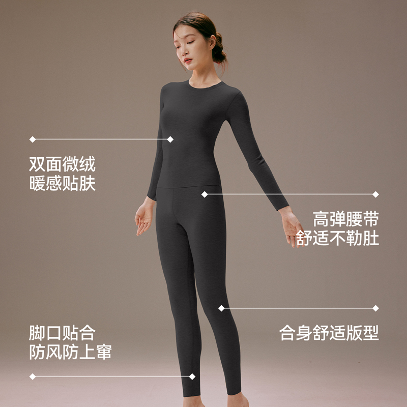 女线衣线裤 2025秋冬秋衣秋裤 双面绒打底中厚修身 森马女士内衣套装