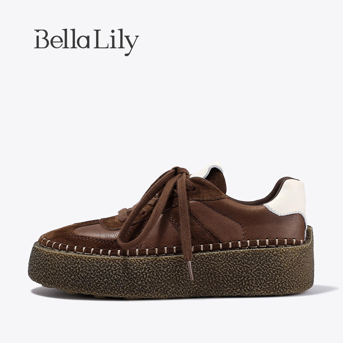 潮流女鞋 BellaLily2025秋季 百搭牛皮德训鞋 复古日系休闲板鞋 新款
