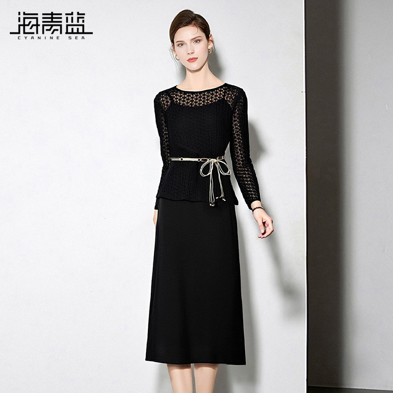 休闲纯色早秋女装 海青蓝 高级洋气时尚 秋冬女2025新款 两件套 套装