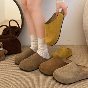 外穿半拖鞋 三喜软木日系博肯秋季 厚底增高包头拖女2025夏季 勃肯鞋