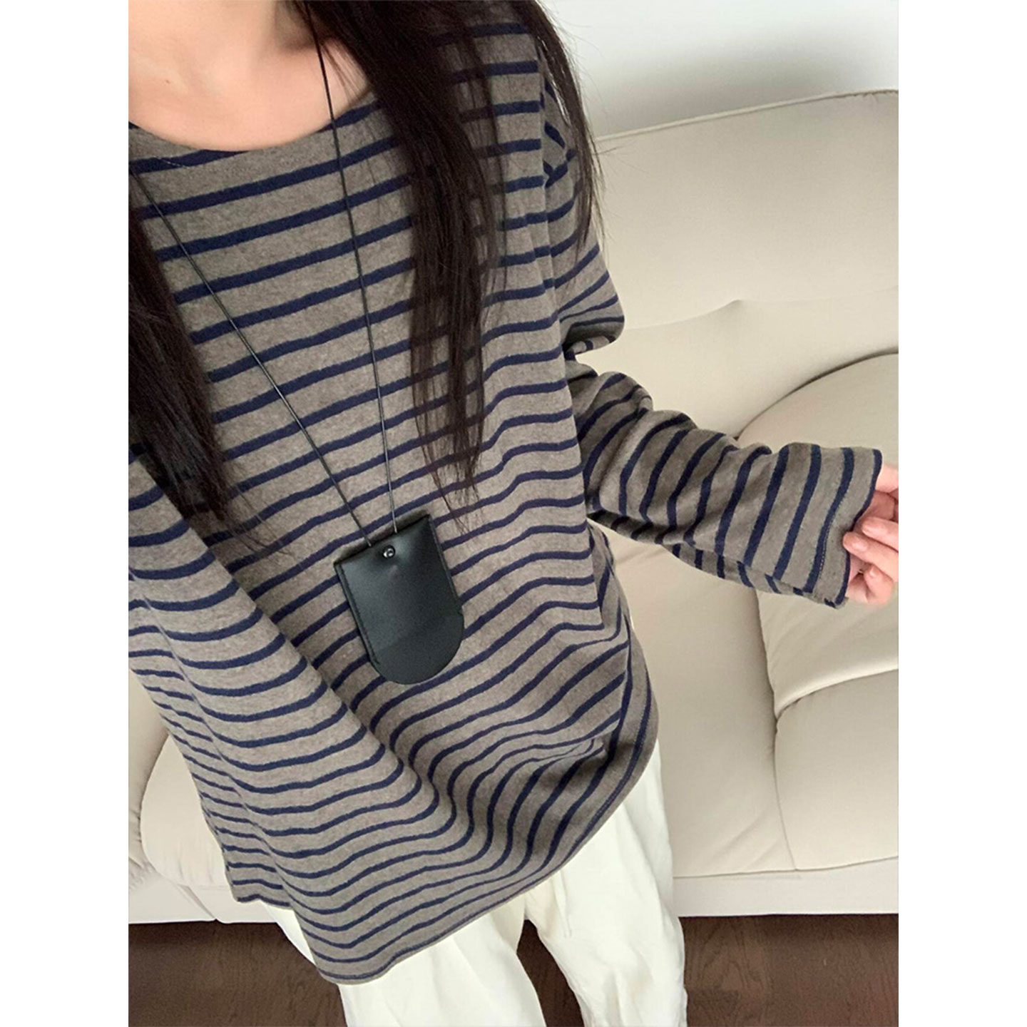 打底衫 韩系氛围感早秋穿搭黑色条纹长袖 爆款 2025新款 上衣 t恤女装