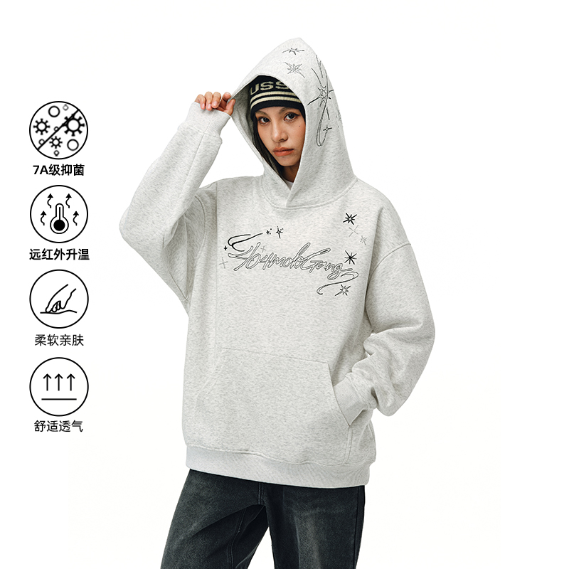 外套 重工刺绣连帽卫衣潮秋冬加绒加厚重磅情侣款 Achock官方店