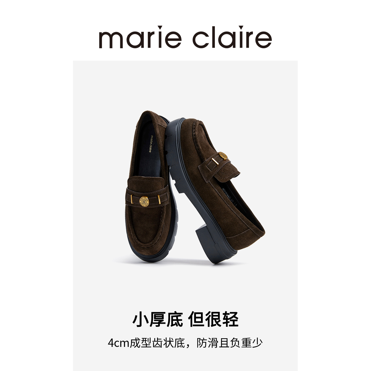 marieclaire女鞋 MC女鞋 绒面小皮鞋 2025年冬新款 小厚底硬币乐福鞋