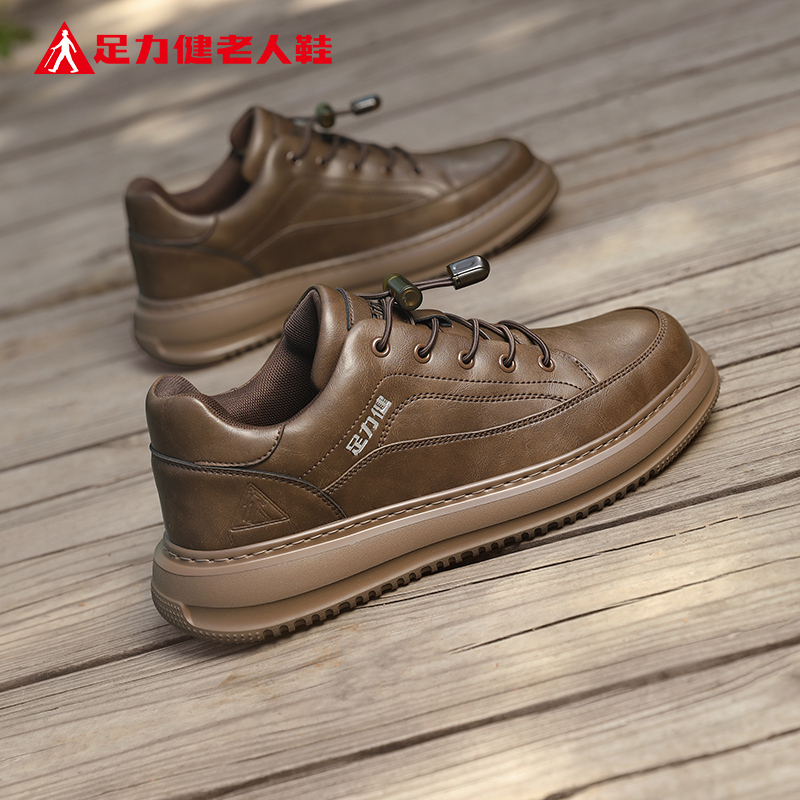 皮面休闲健步软底不累脚男鞋 足力健老人鞋 官方旗舰店中年爸爸秋季
