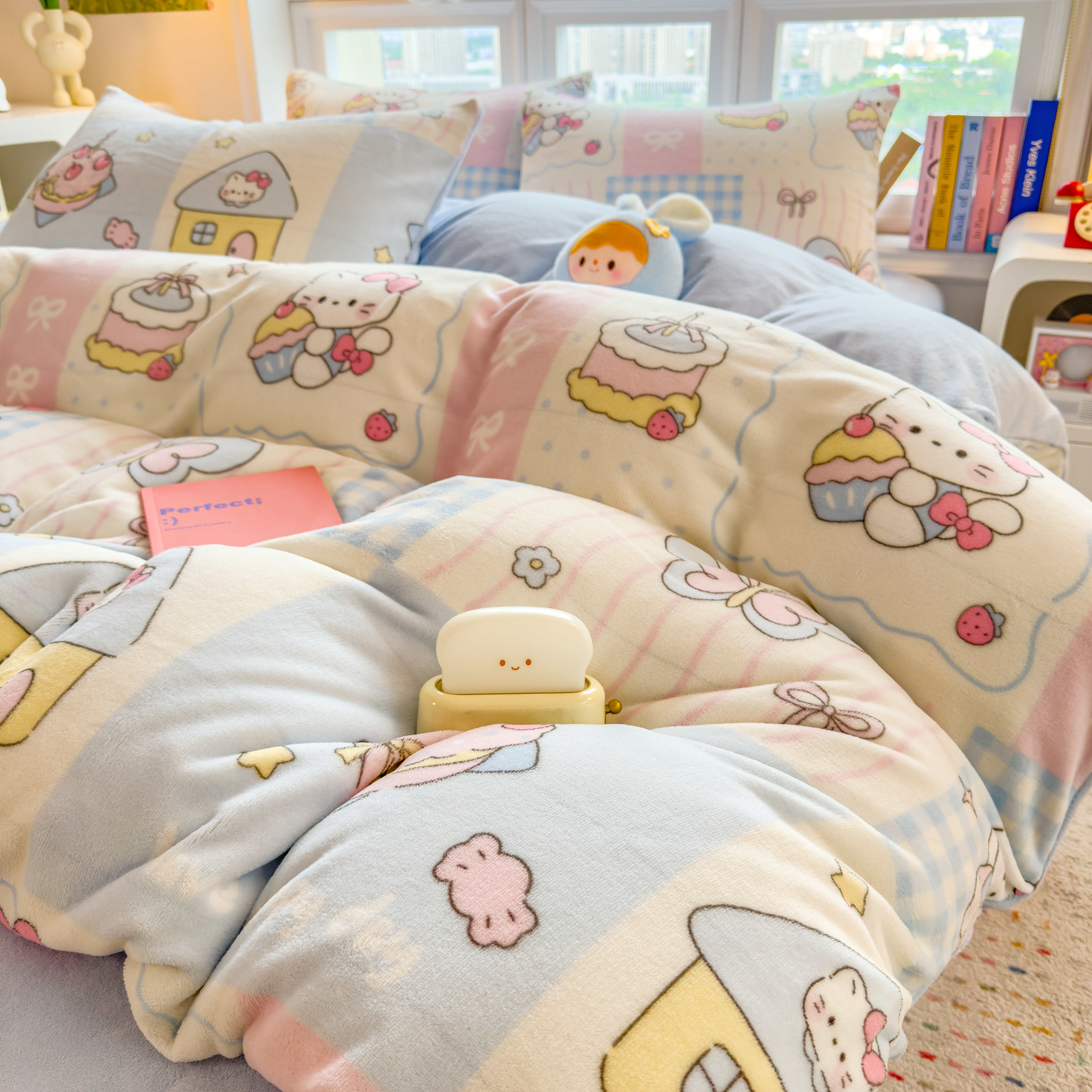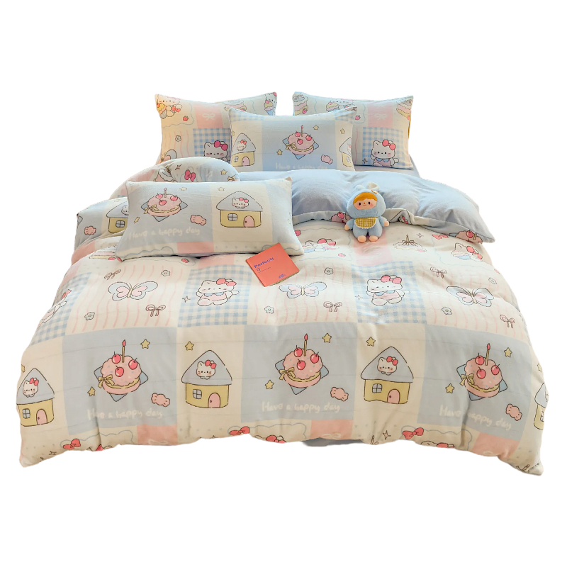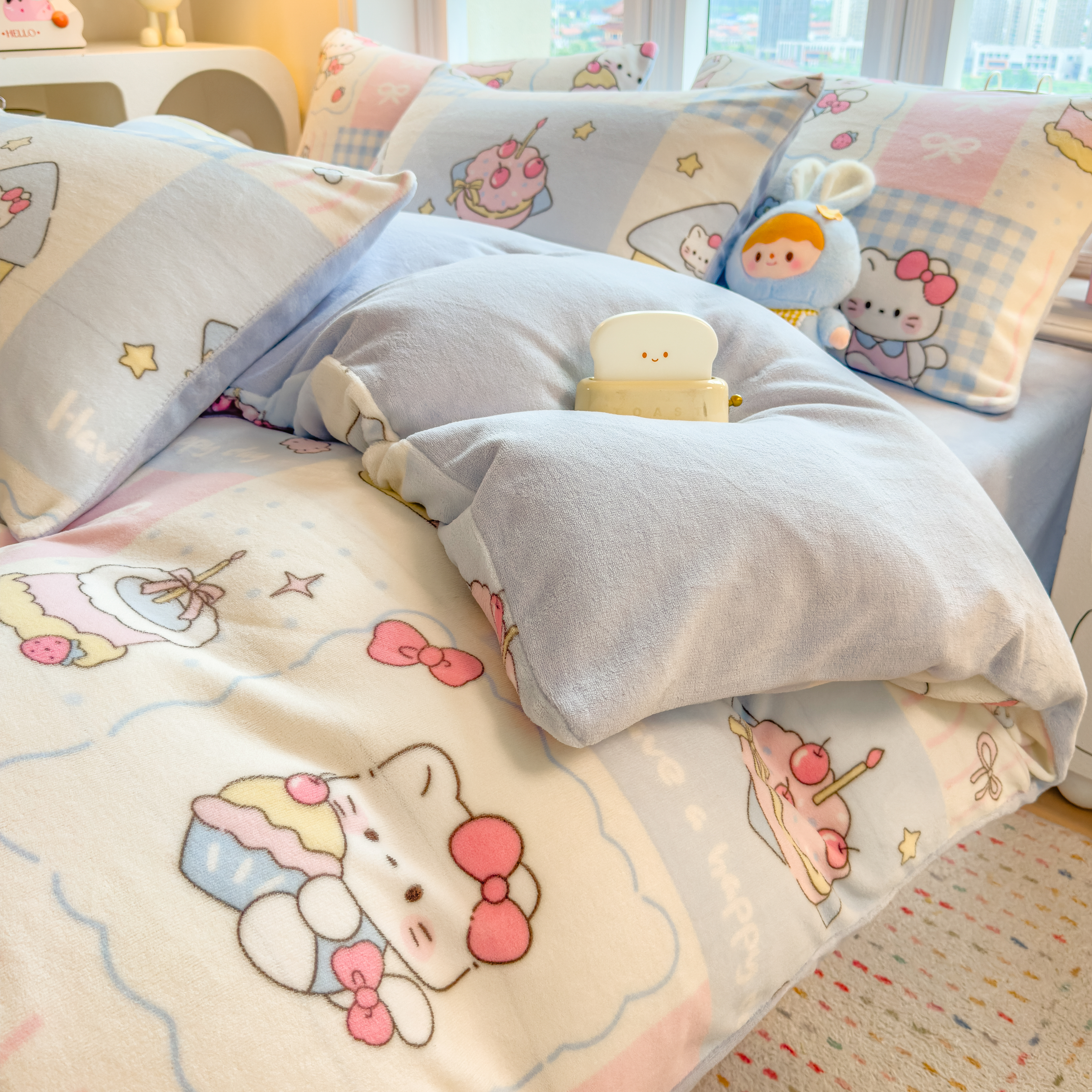 无印良品全棉床单学生宿舍纯棉卡通儿童被套秋冬三件套床上用品