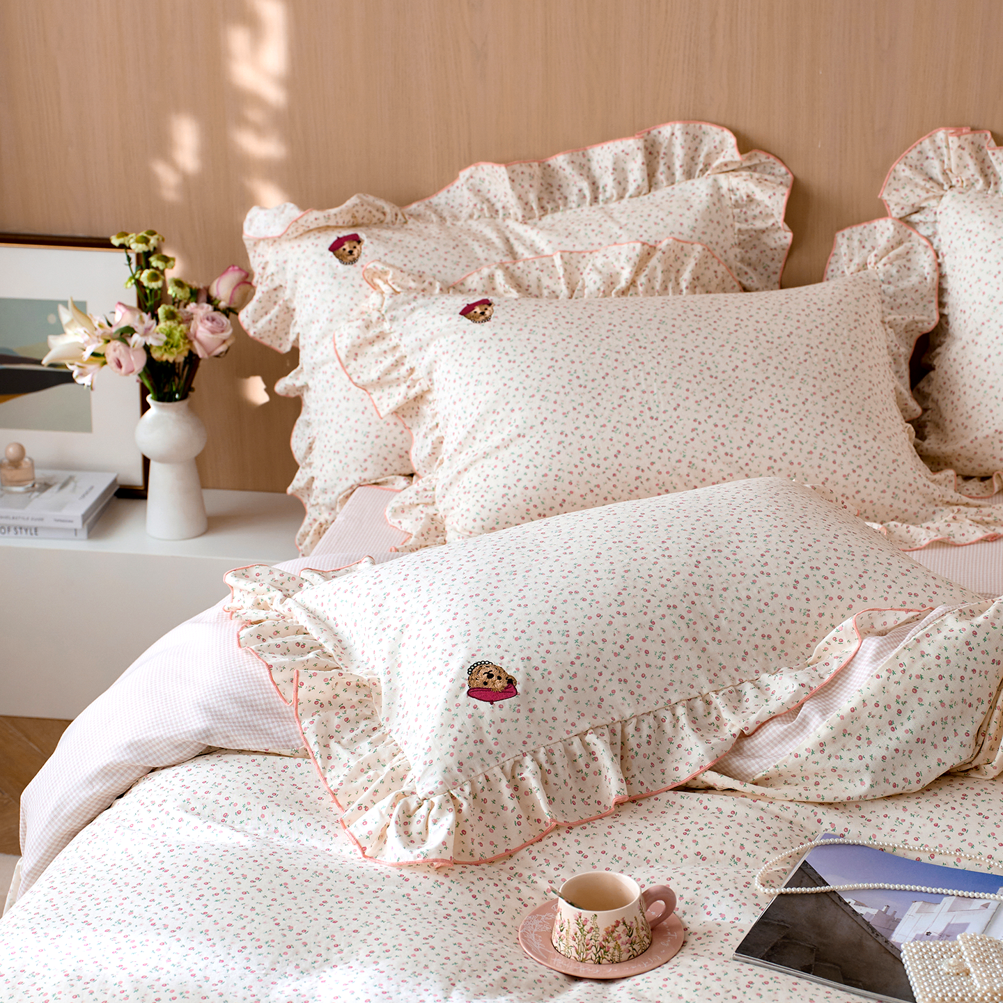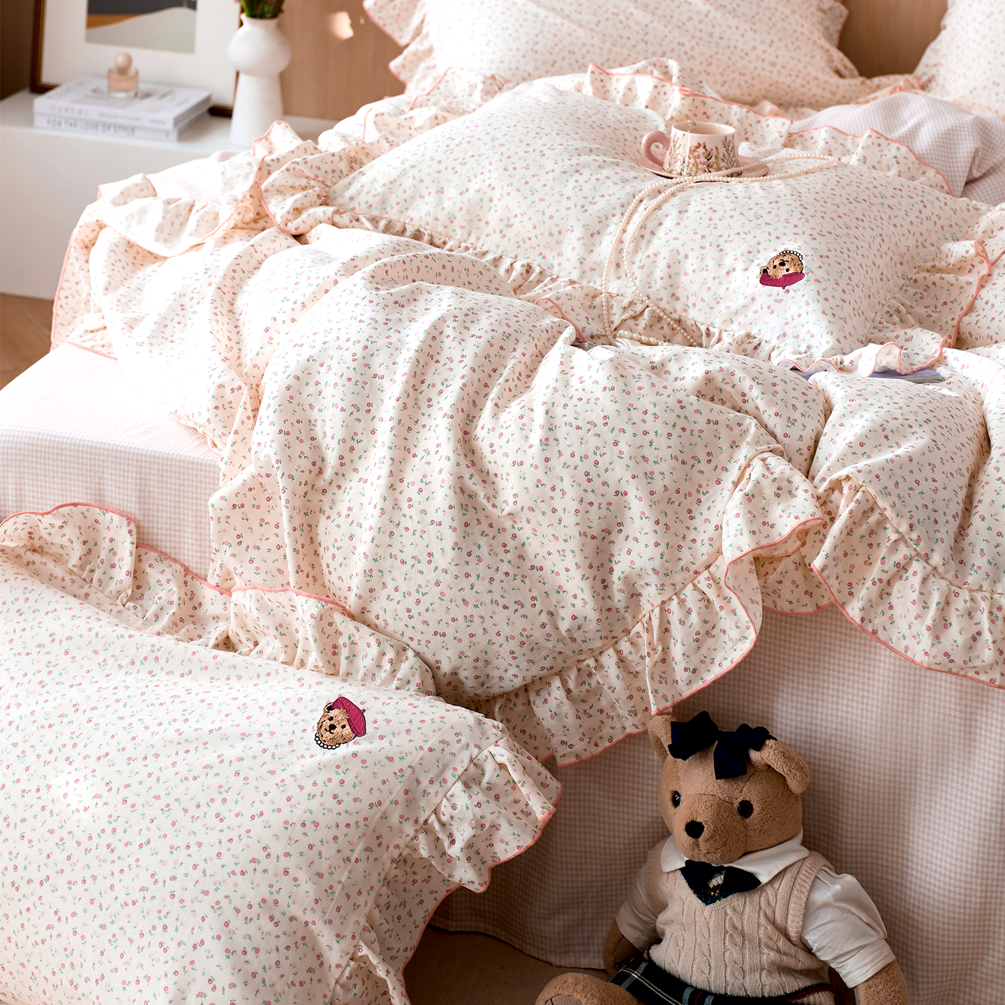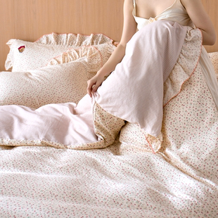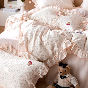 TeenieWeenie韩式 公主风粉嫩碎花花边四件套全棉双层纱床单被套