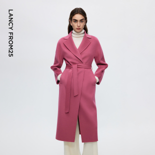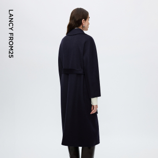 呢外套25年冬季 朗姿纯羊毛水波纹毛呢大衣中长款 新款 免定金