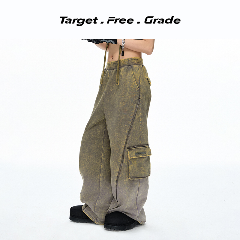 大码 多口袋纯棉宽松直筒休闲裤 户外工装 裤 子秋 运动裤 阔腿长裤 男士