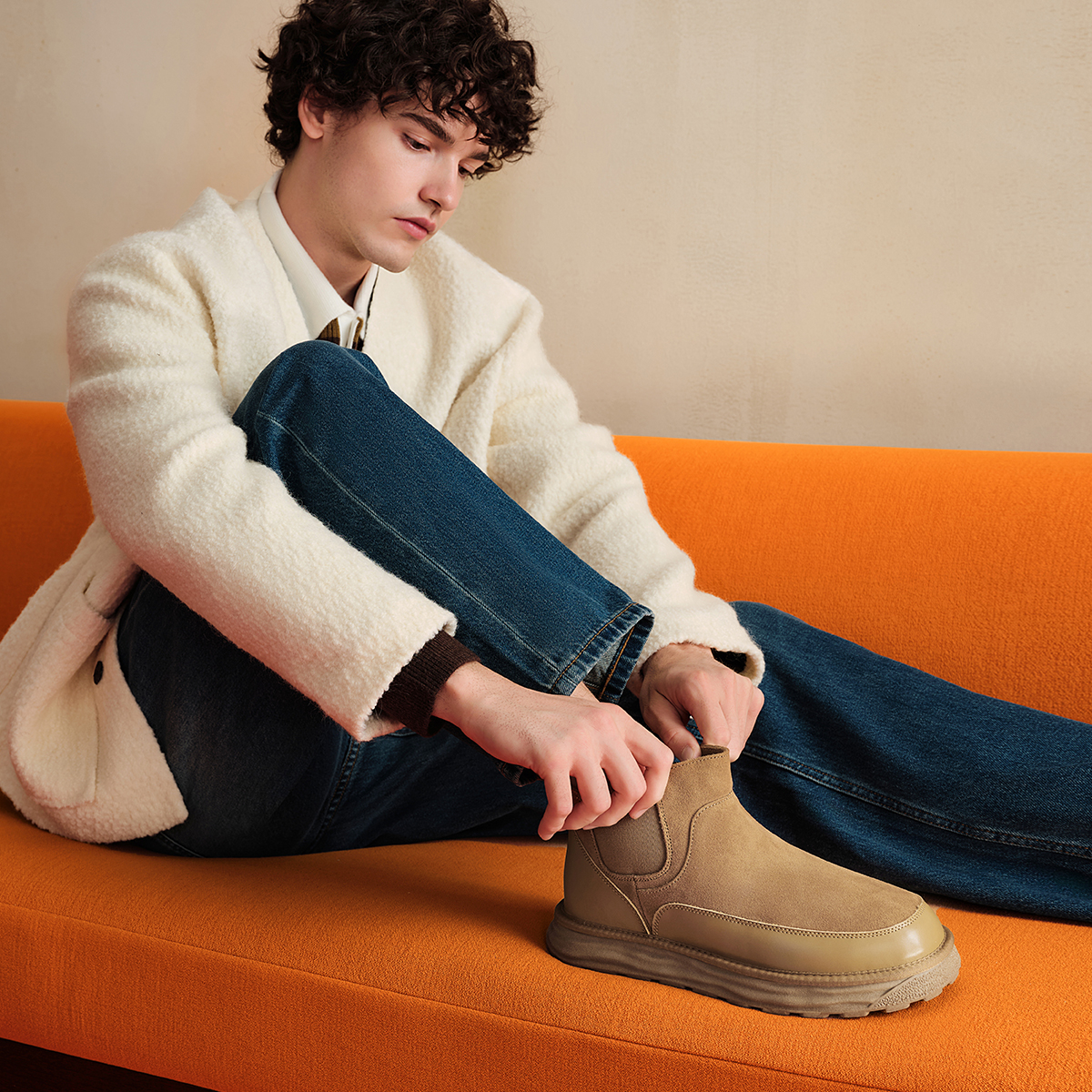 真皮户外棉靴保暖时尚 意尔康雪地靴男2025冬款 大棉鞋 双11预售