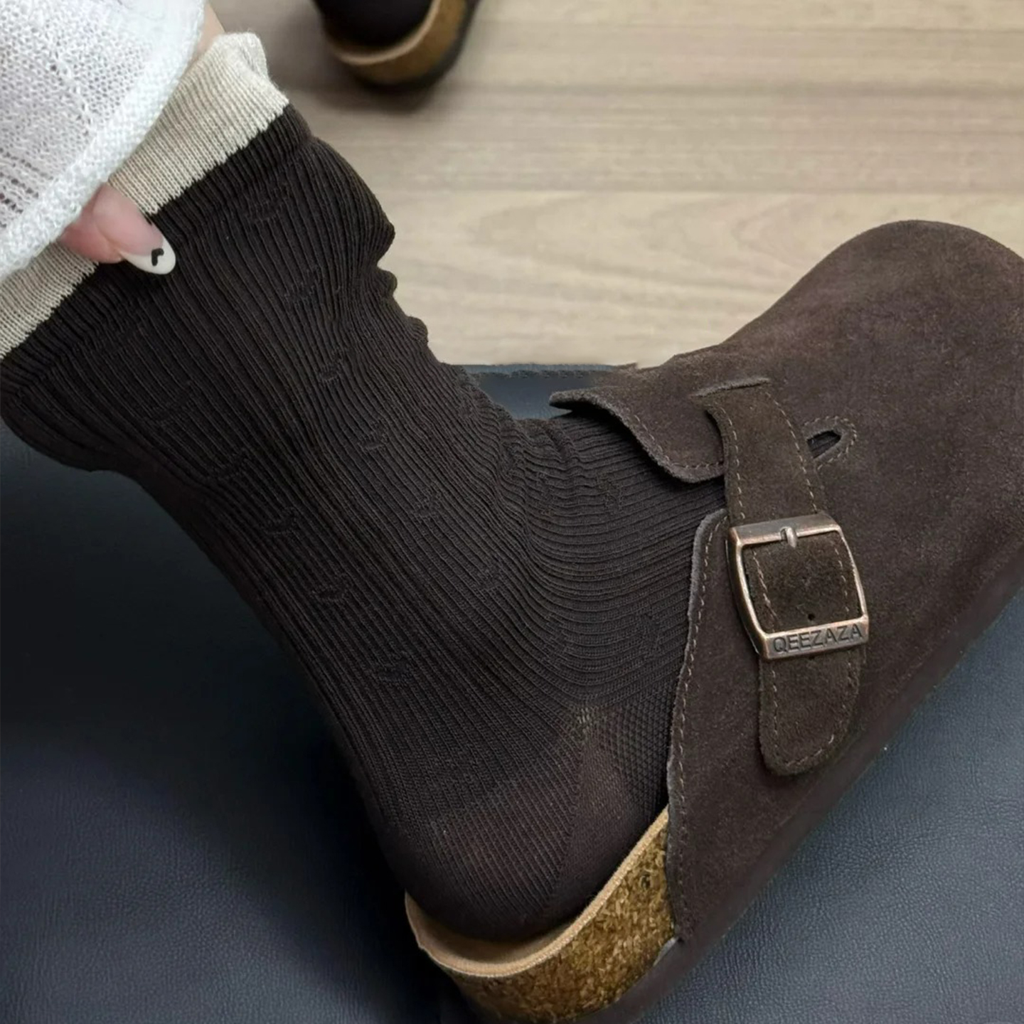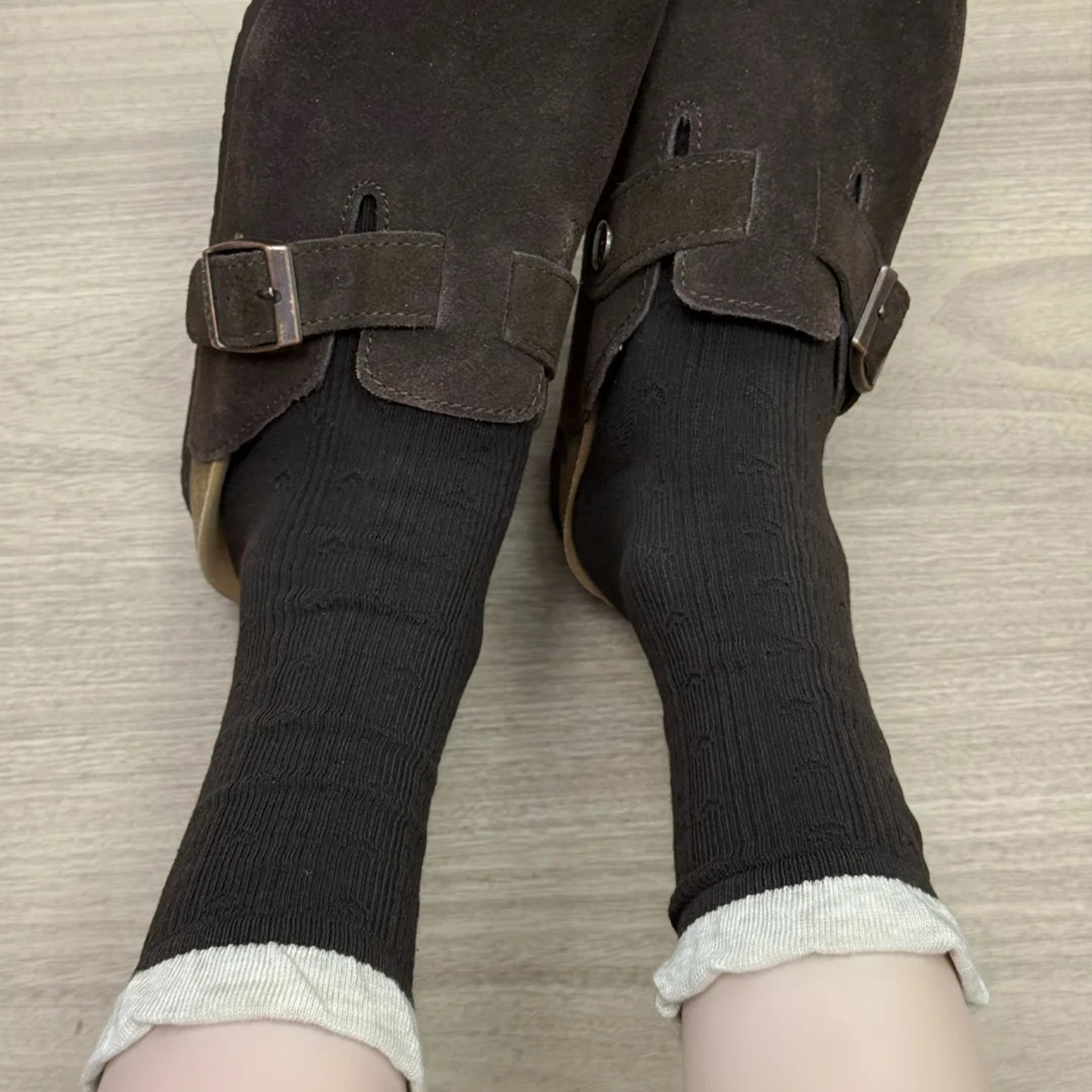 勃肯鞋 搭配袜子春秋咖色袜子中筒袜长袜堆堆袜美拉德袜子女花边袜