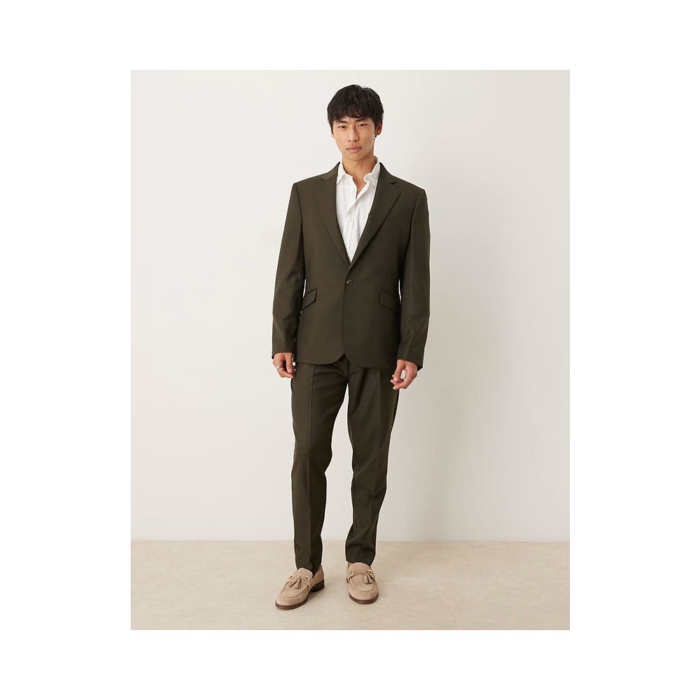 潮奢 橄榄绿绿色灰色织物西装 ASOS 设计修身 男士 1h可退