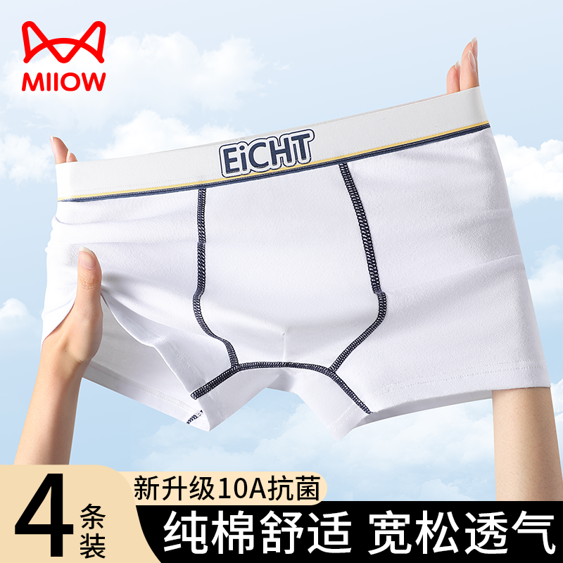 内裤 头男款 男纯棉抗菌四角裤 透气男生平角运动短裤 衩夏季 猫人男士