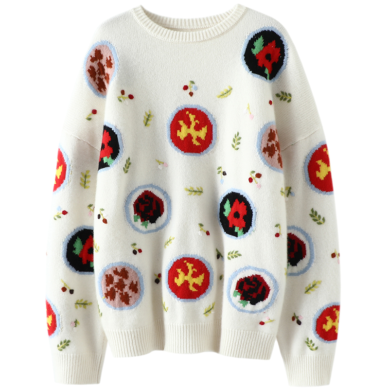 高级感上衣宽松打底针织衫 圆领100%纯山羊绒衫 女高端毛衣秋冬新款