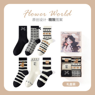 卡拉美拉新款 袜子女士中筒袜潮流可爱少女卡通棉袜百搭女袜 秋冬季