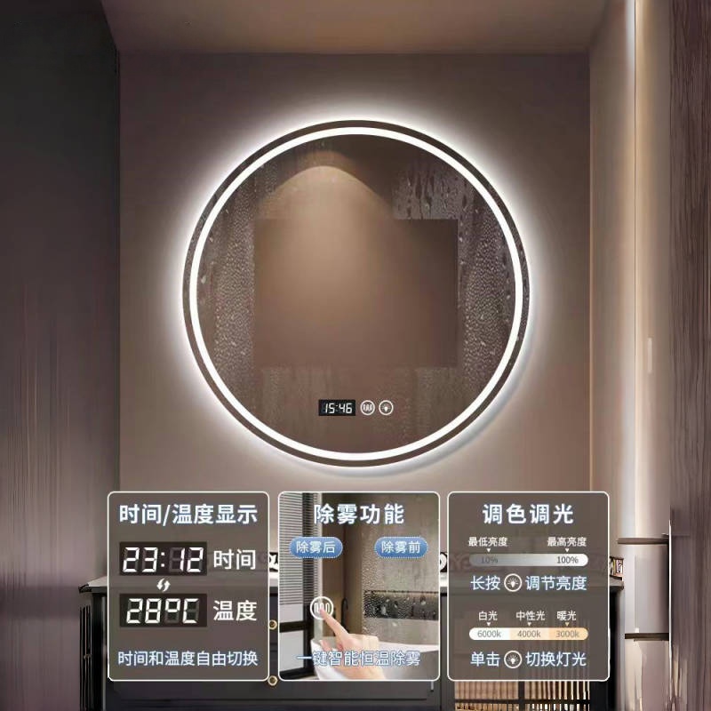 智能镜圆形浴室镜子卫生间带灯led感应防雾发光化妆镜壁挂玻璃