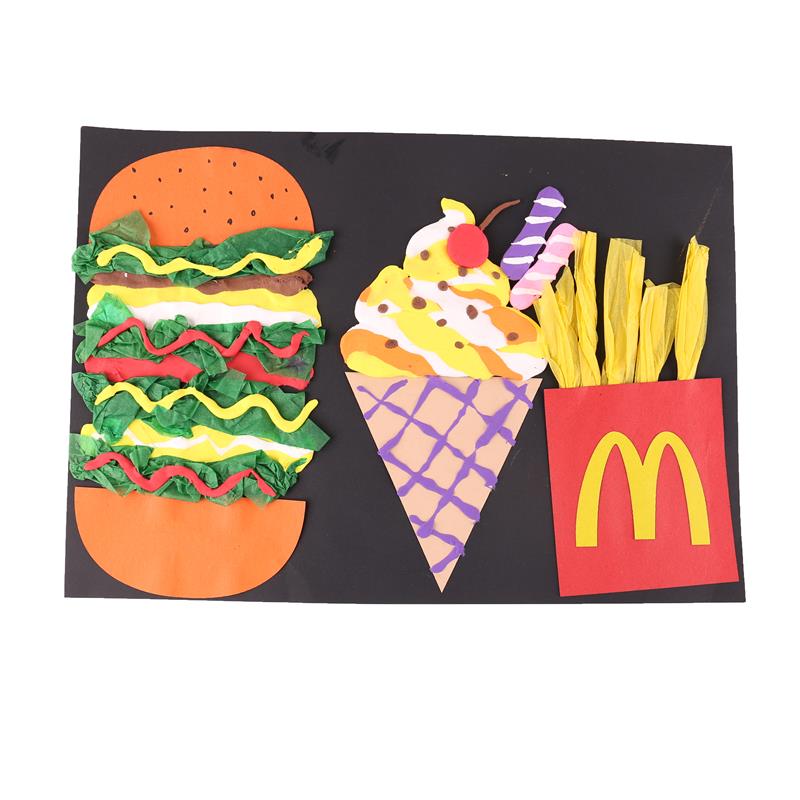 幼儿园立体环创纸质自制粘土贴画 儿童手工diy汉堡薯条贴画材料包