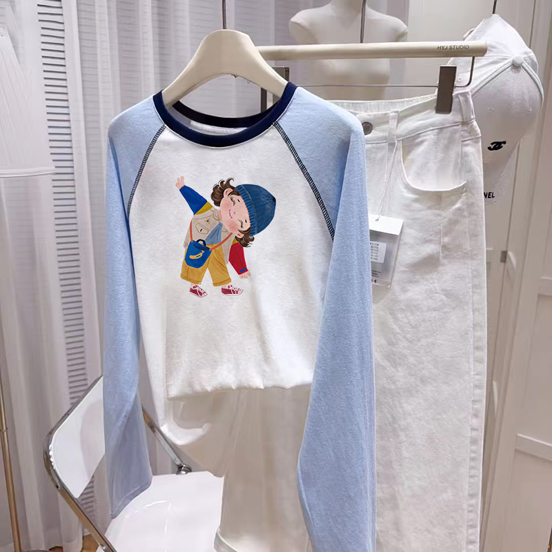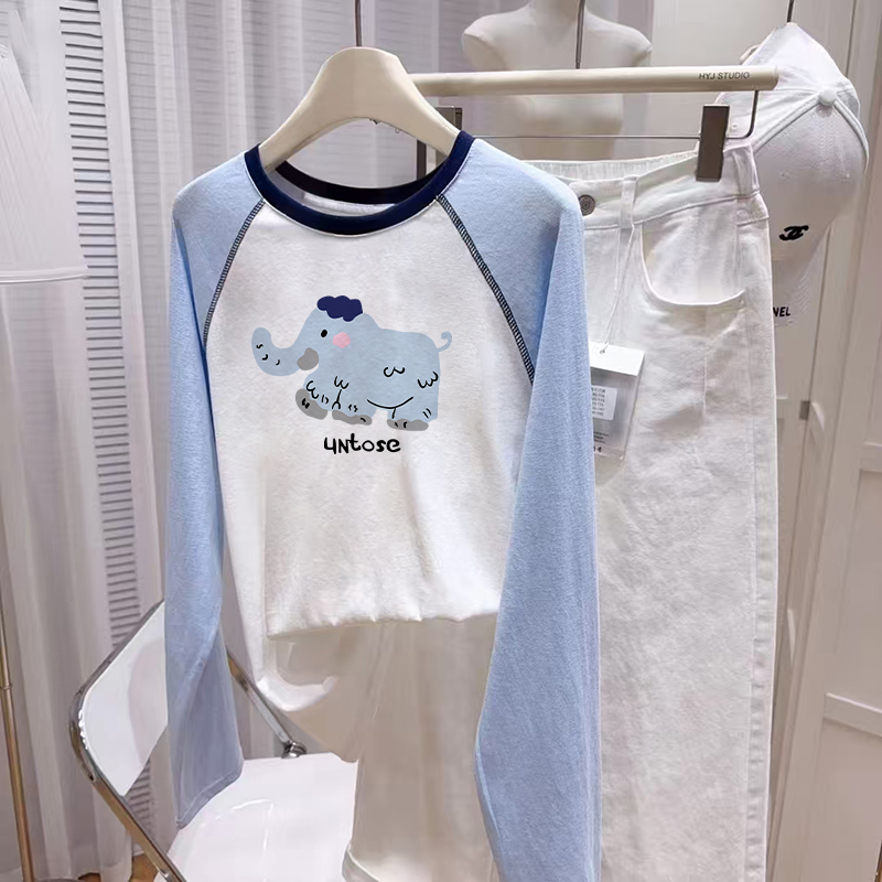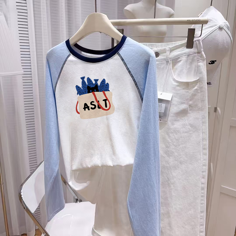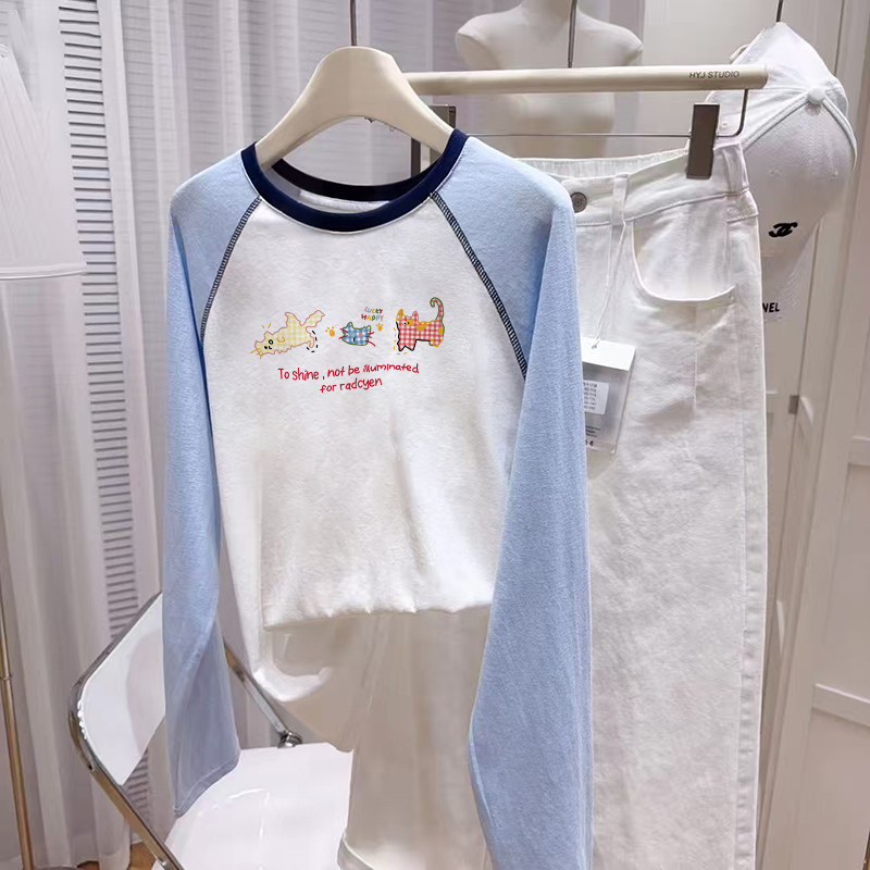 撞色秋装 胖mm显瘦插肩袖 女款 爆款 潮 宽松长袖 2025新款 t恤上衣大码