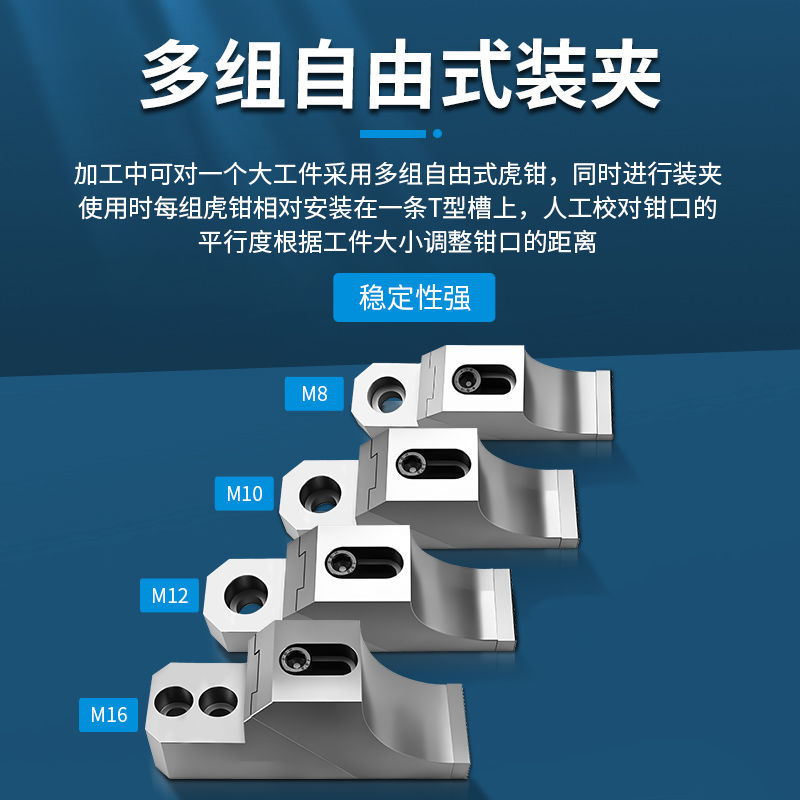 单向蛤蟆钳侧面固定防翘cnc加工中心M10多位夹具精密虎钳重型切削
