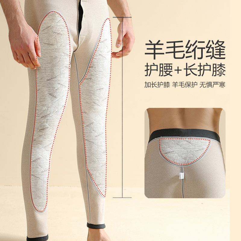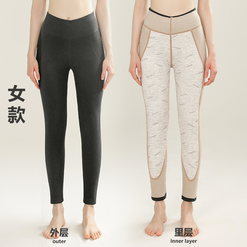 俞兆林男女士羊毛贴片保暖裤 加绒护膝加长 高腰显瘦加厚情侣打底裤