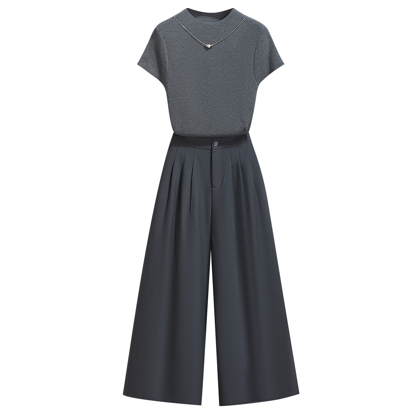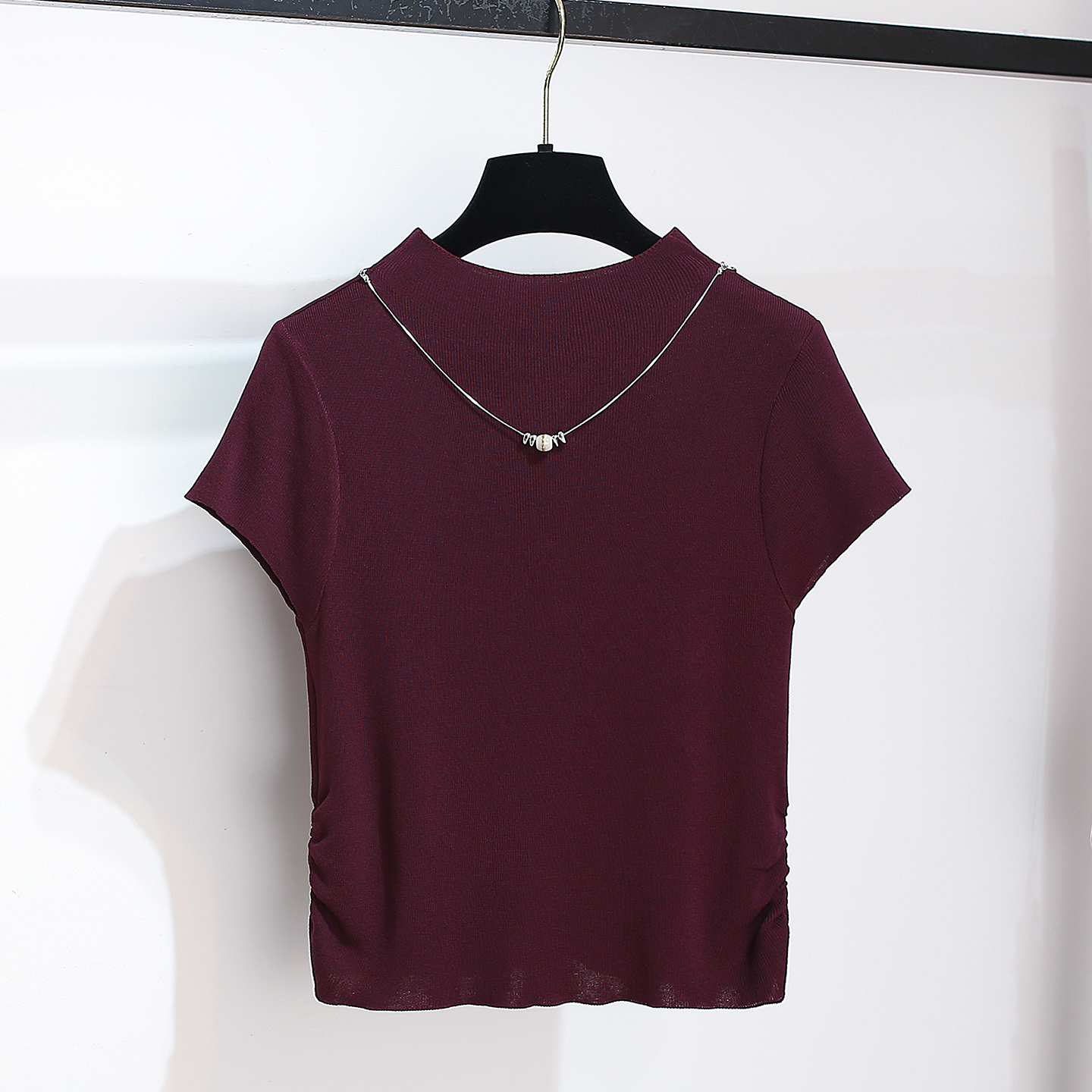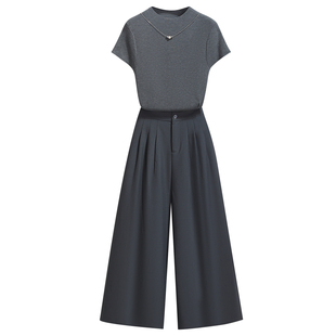 2025早秋新薄短款 T恤女夏季 显瘦上衣 小半高领短袖 灰色针织打底衫