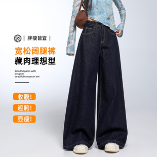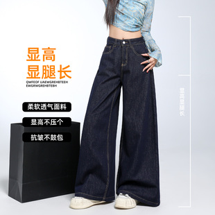 阔腿裤 宽松显瘦慵懒小个子窄版 女2025年春秋新款 高腰直筒软牛仔裤