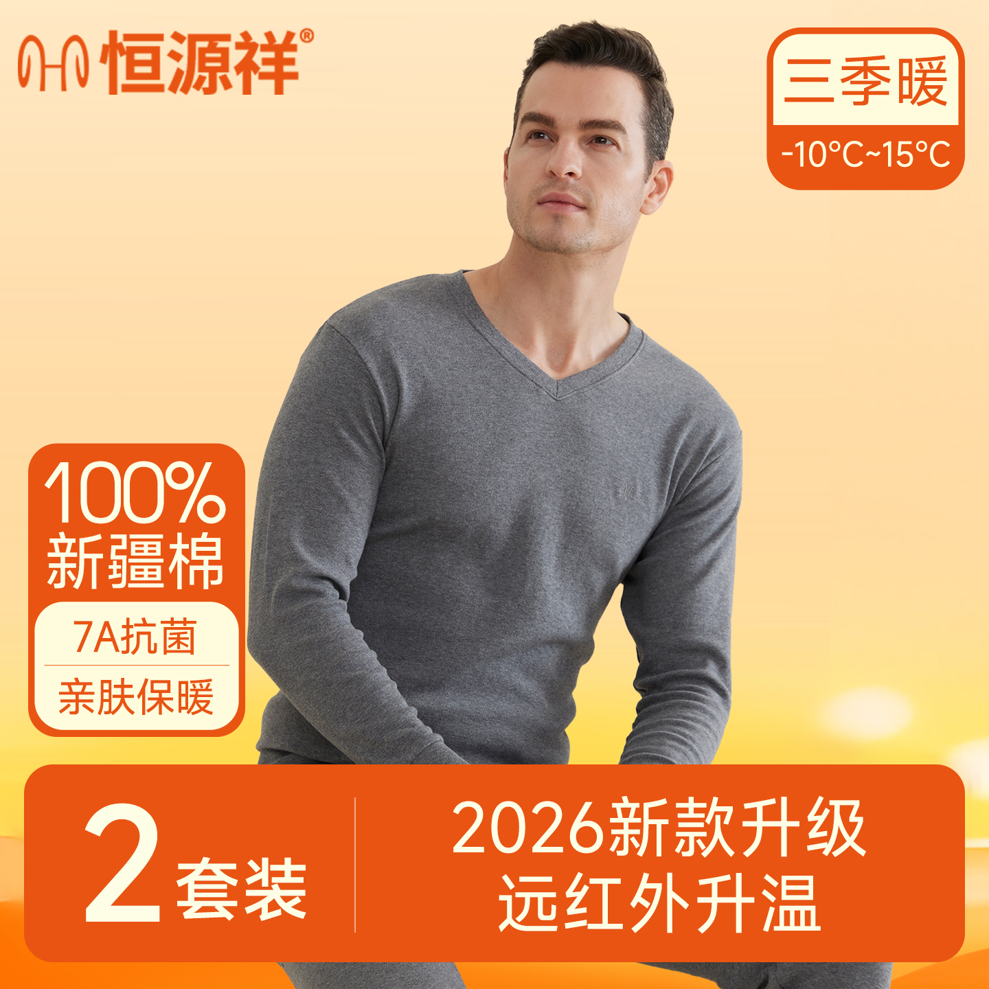 保暖内衣纯棉秋冬季 大码 秋衣秋裤 男防寒全棉毛衫 薄 套装 恒源祥男士