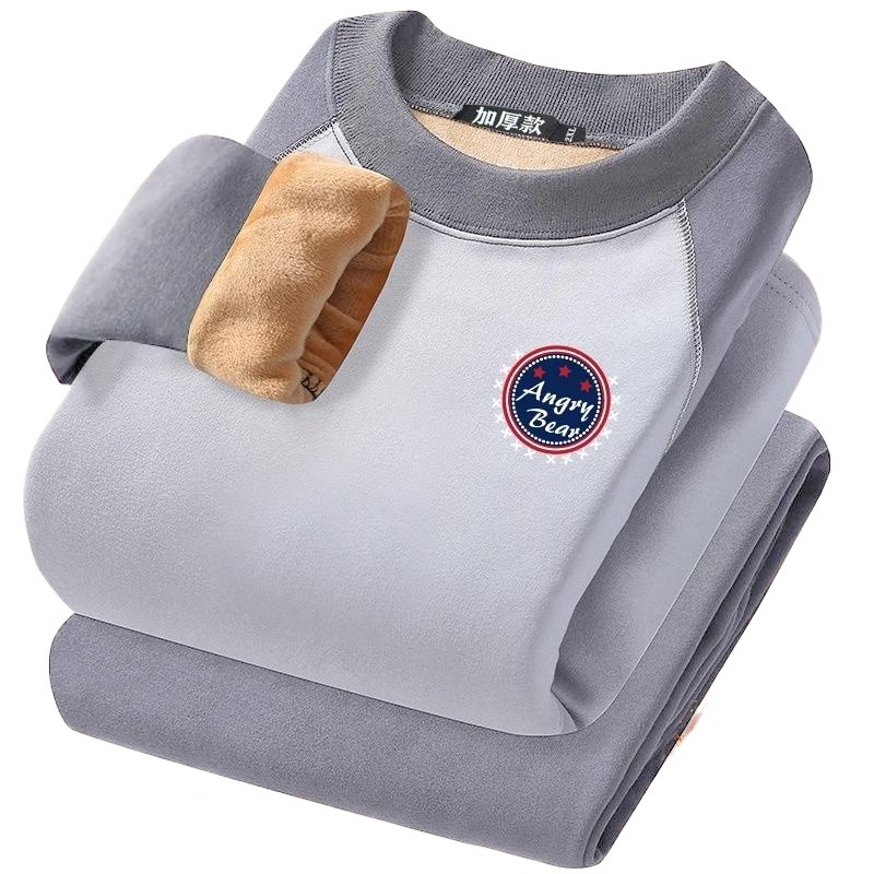 防寒秋衣秋裤 加绒加厚套装 青少年圆领打底衫 保暖内衣冬季 一套 男士
