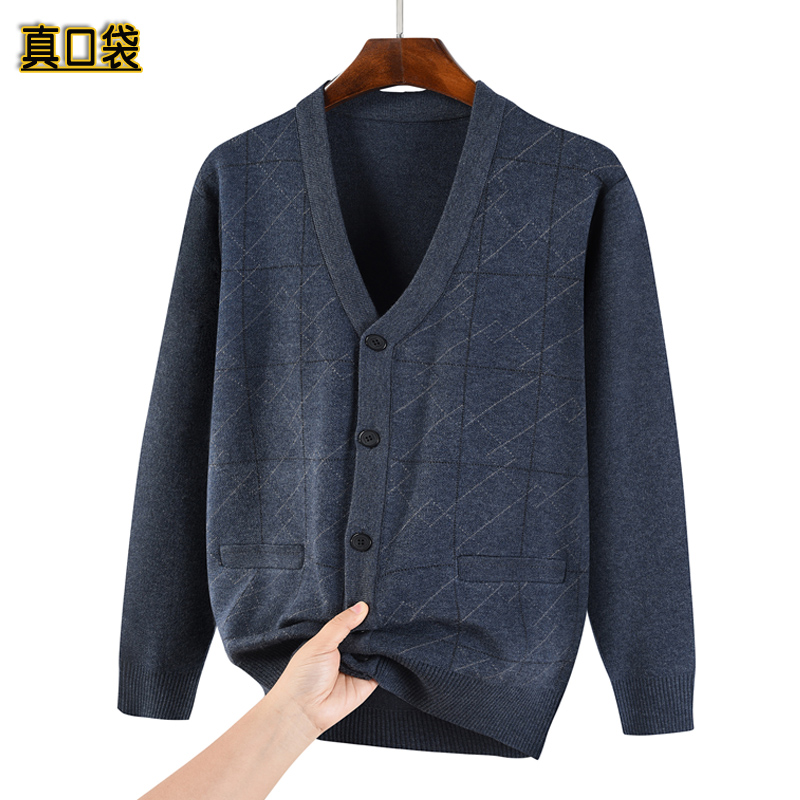 爷爷保暖针织衫 爸爸装 上衣外套 加厚V领毛衣中老年男士 2025秋冬季