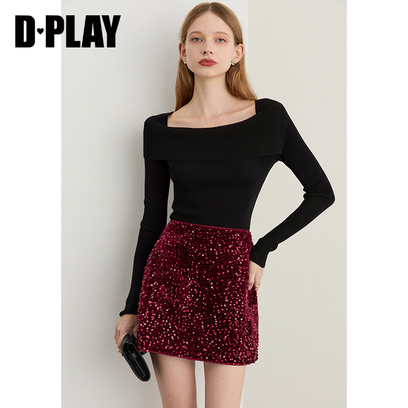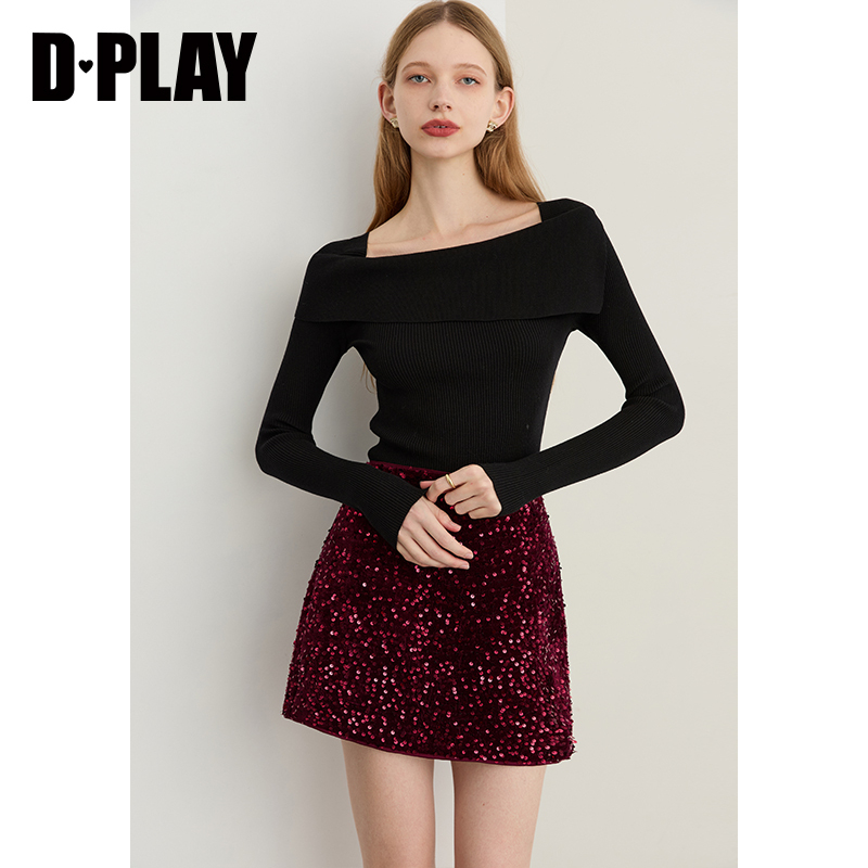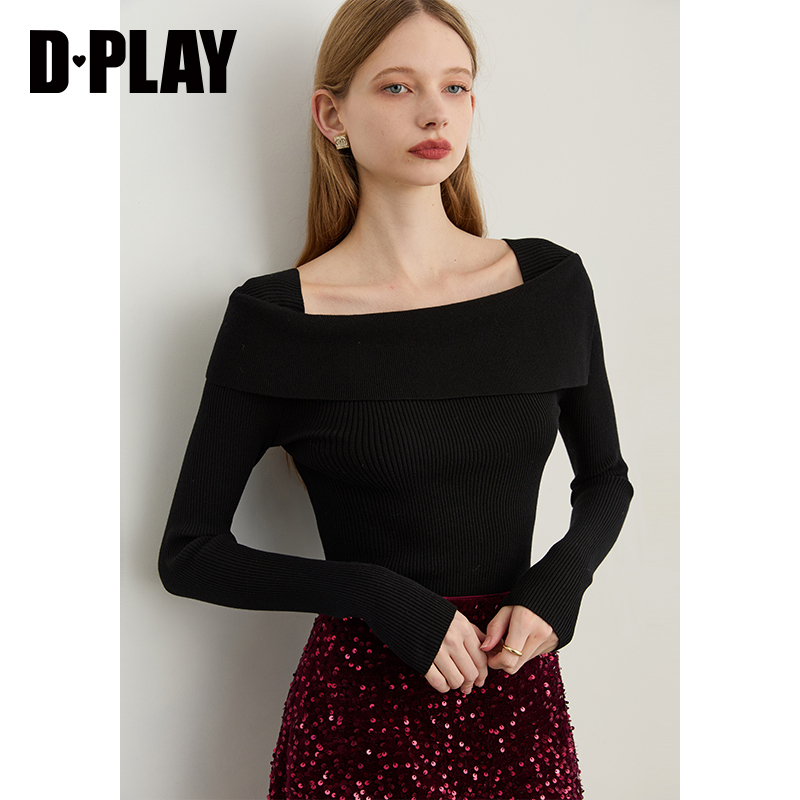 打底衫 DPLAY2025年秋季 女流行洋气含羊毛修身 黑色针织衫 上衣 新款