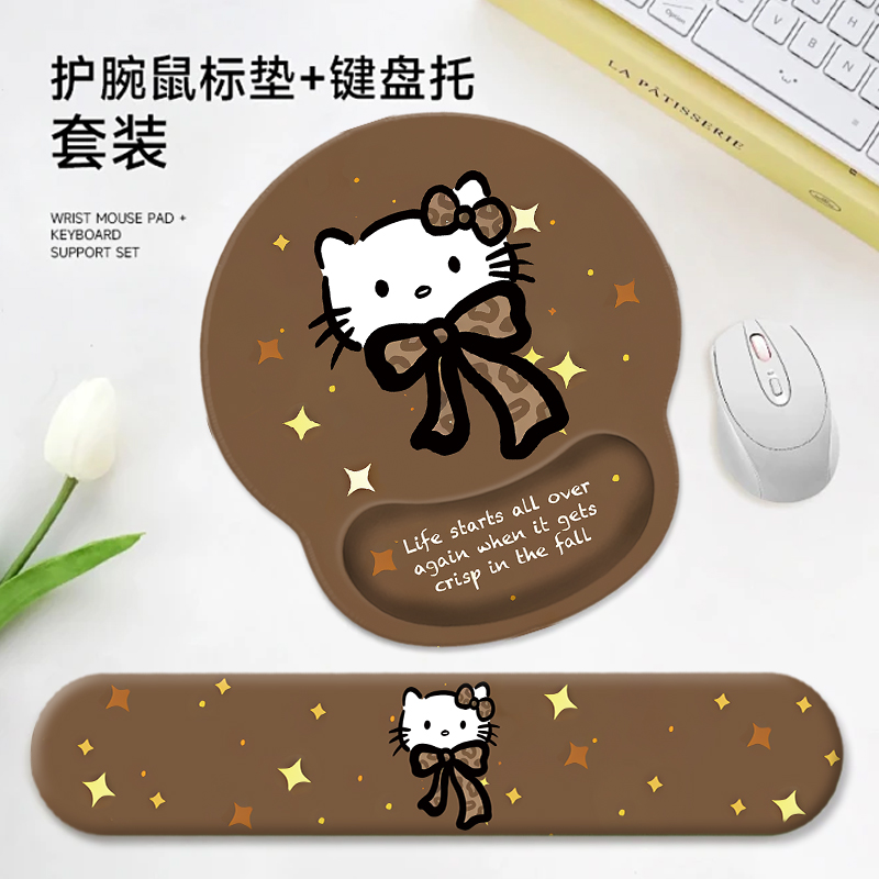 可爱kitty猫护腕鼠标垫秋冬美拉德键盘手托女生高颜值办公防滑垫