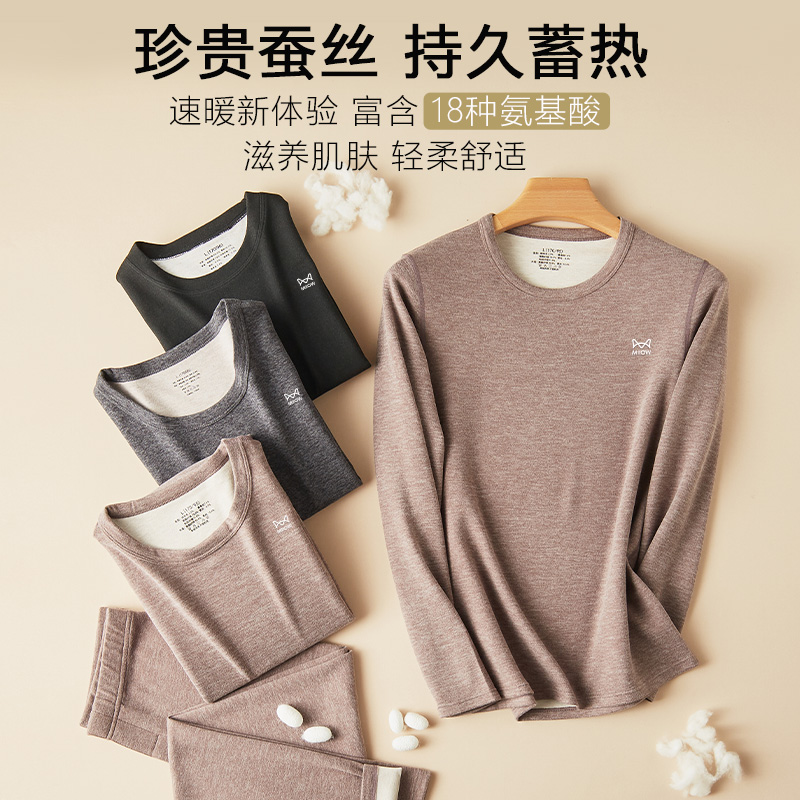 秋冬季 加厚加绒德青年中老年打底秋衣秋裤 套装 猫人保暖内衣男士