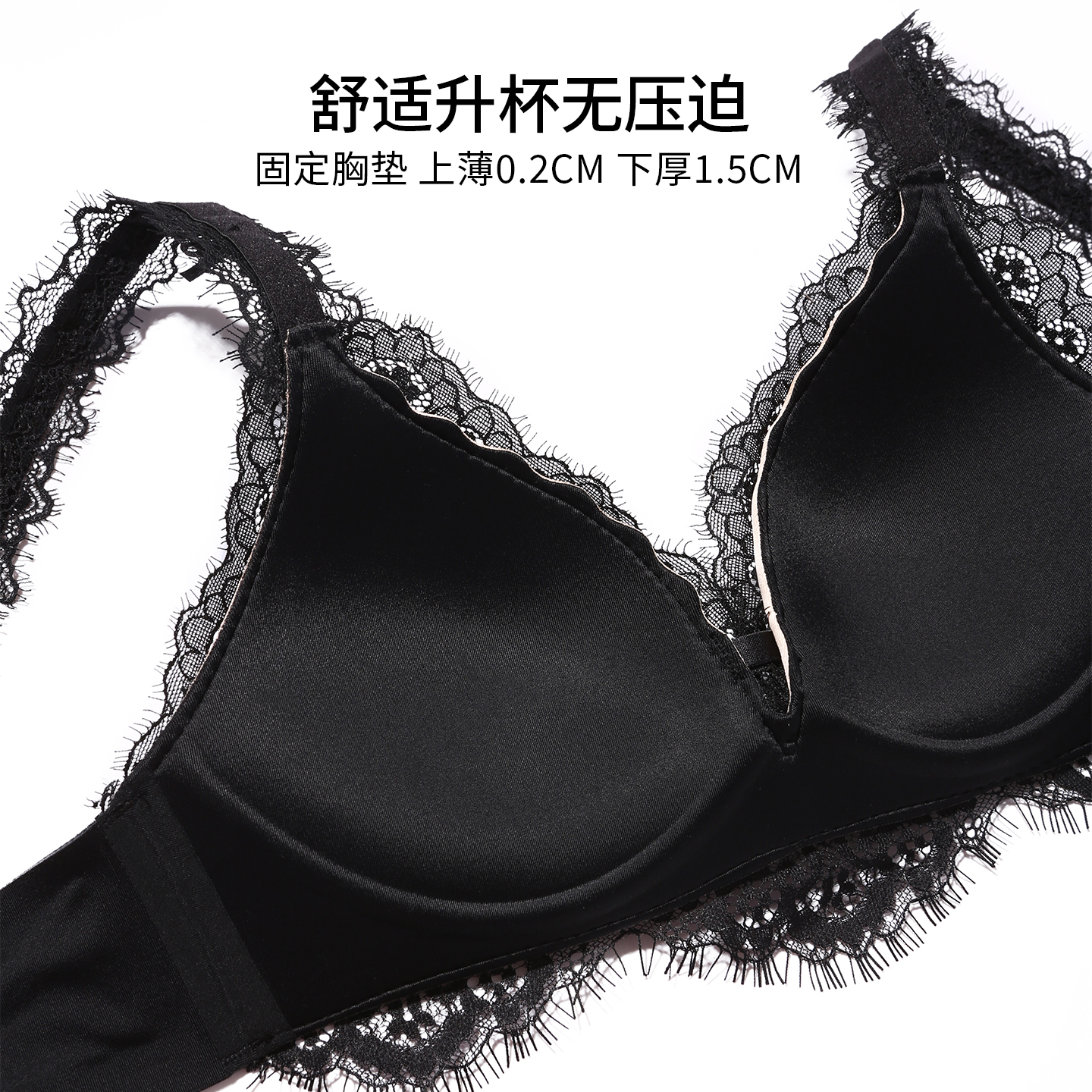好奇蜜斯前扣内衣女聚拢小胸性感蕾丝薄文胸罩套装 美背纯欲夏法式