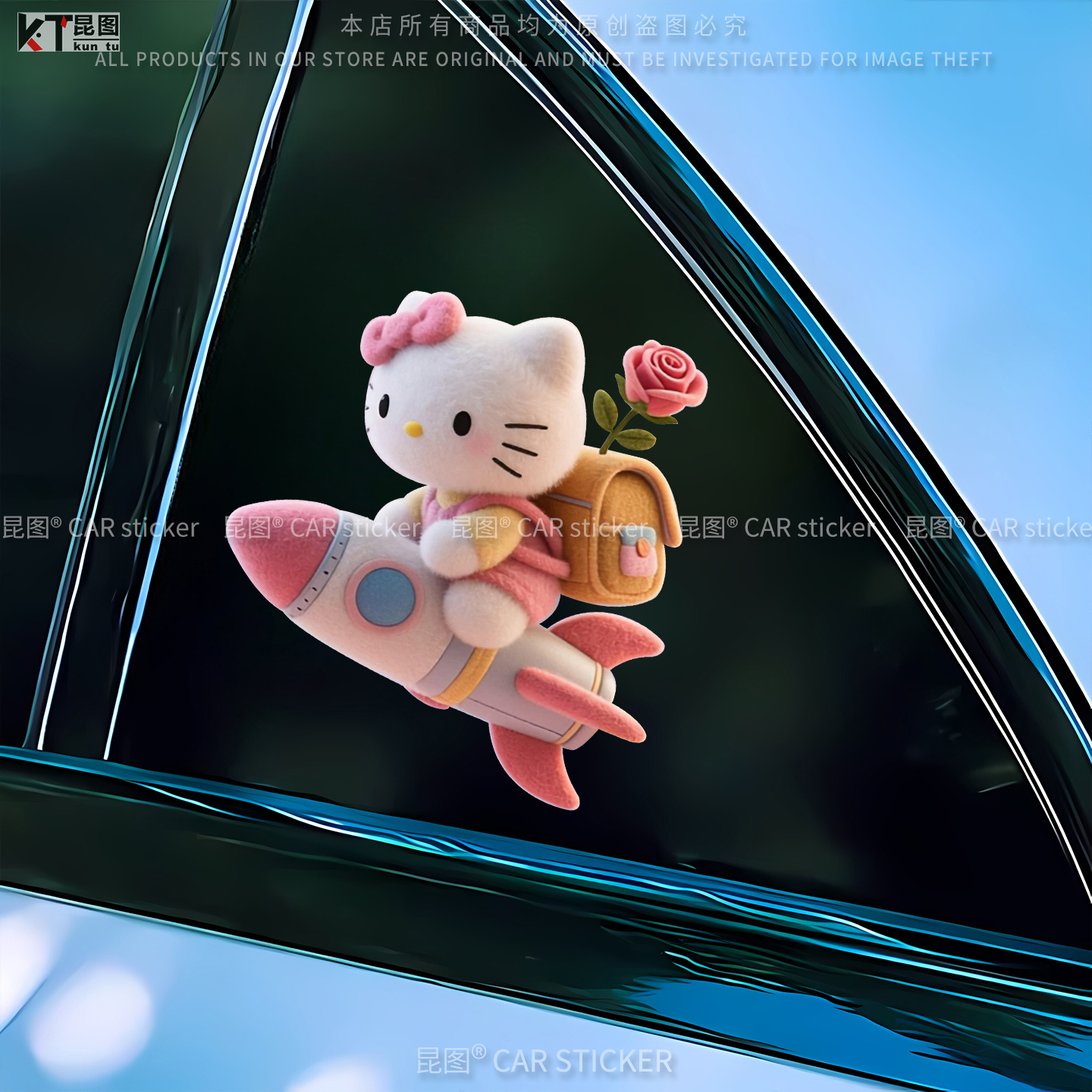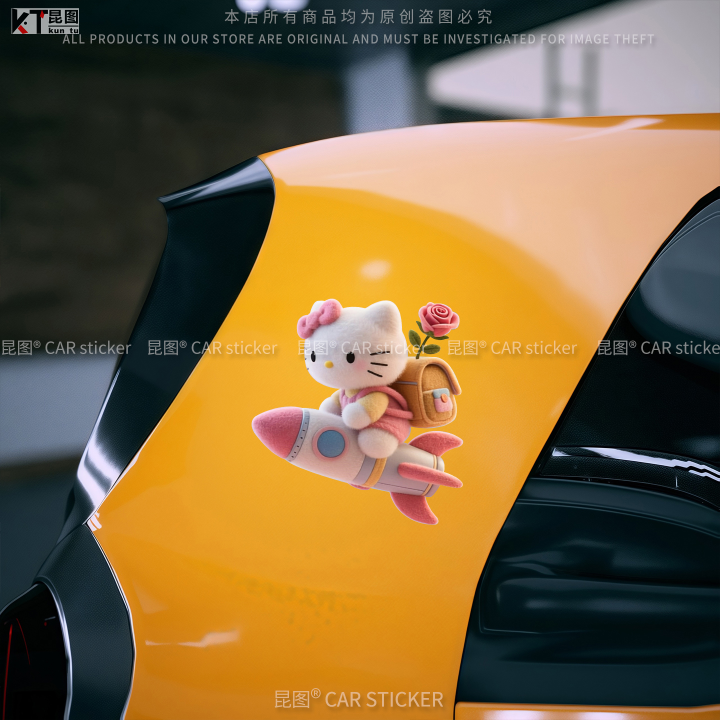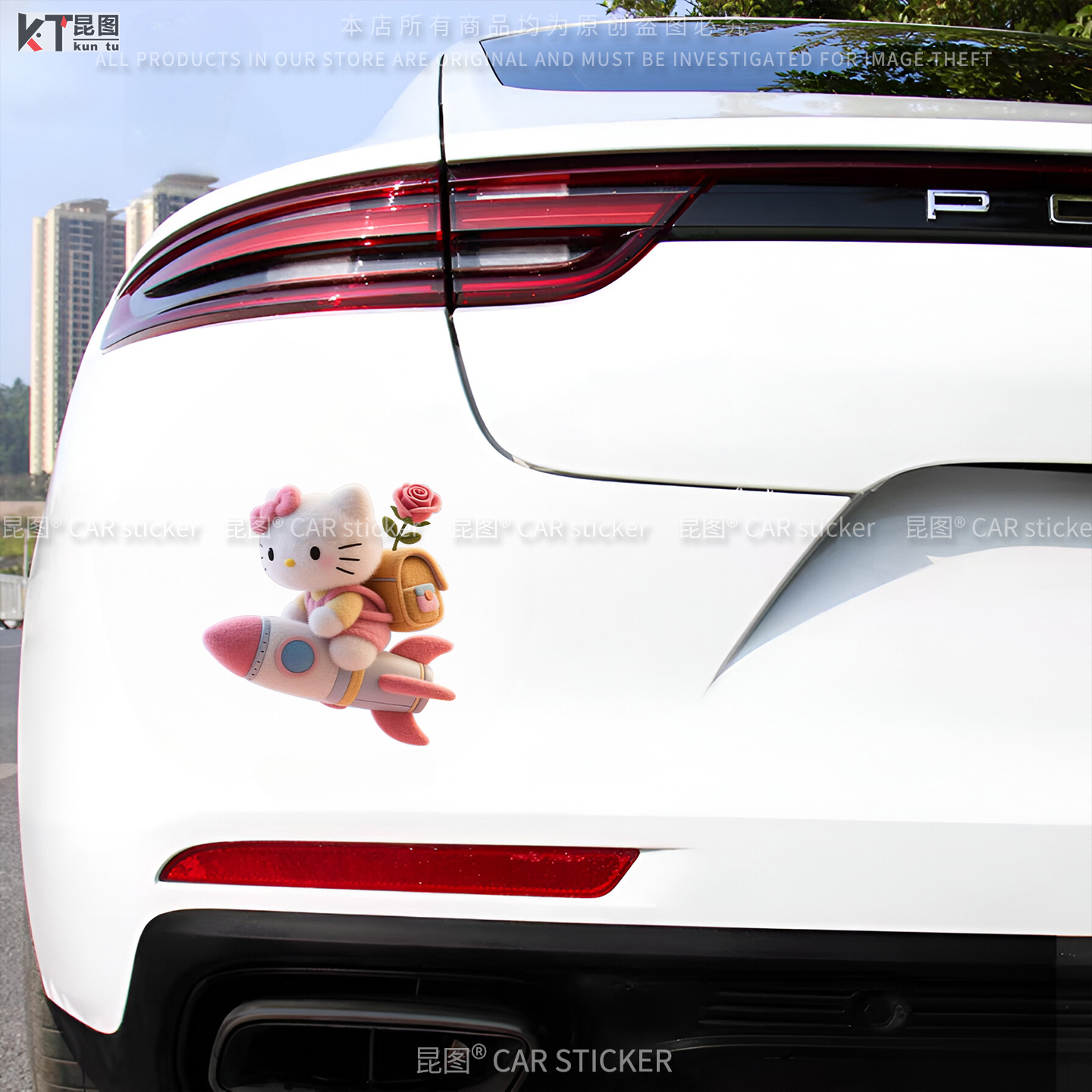 HelloKitty汽车贴纸KT猫可爱卡通装 饰车门车窗电动车行李箱遮划痕