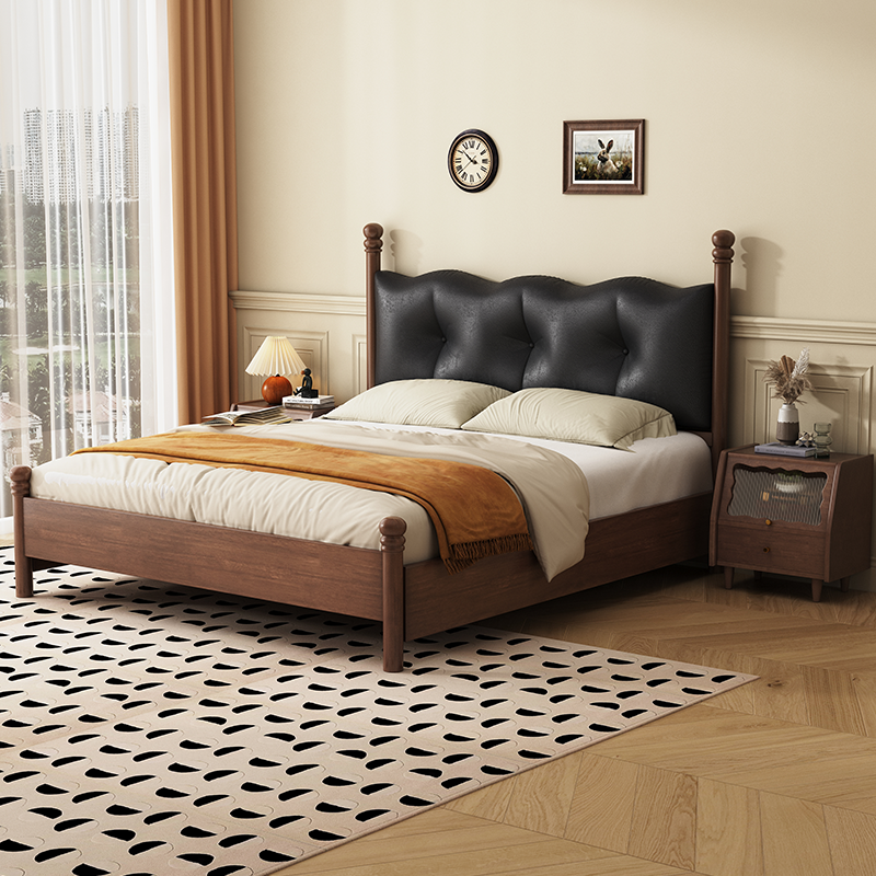 政府补贴蓝色理想法式 复古风实木床现代简约1.8米双人真皮软包床