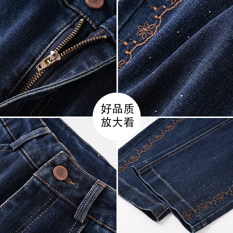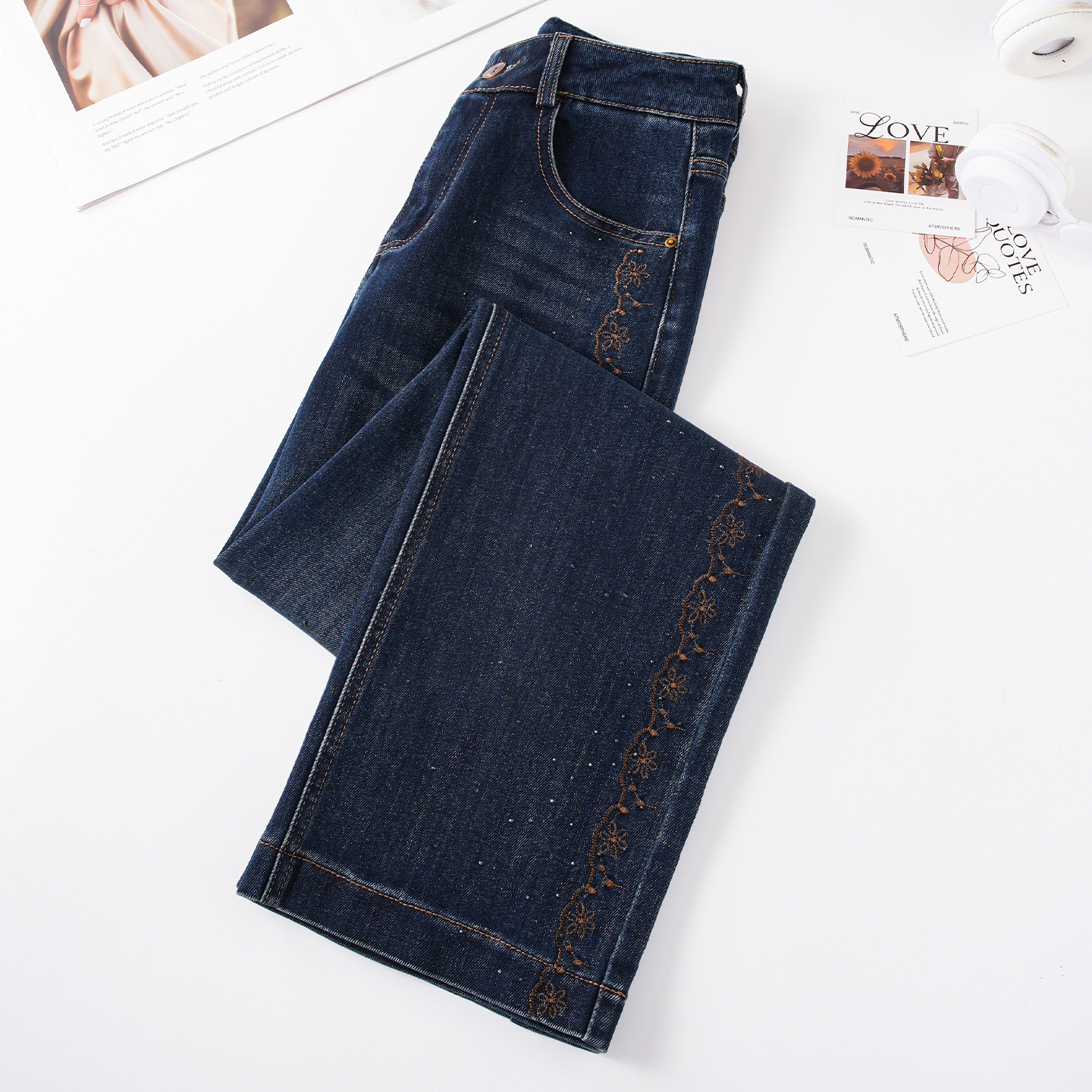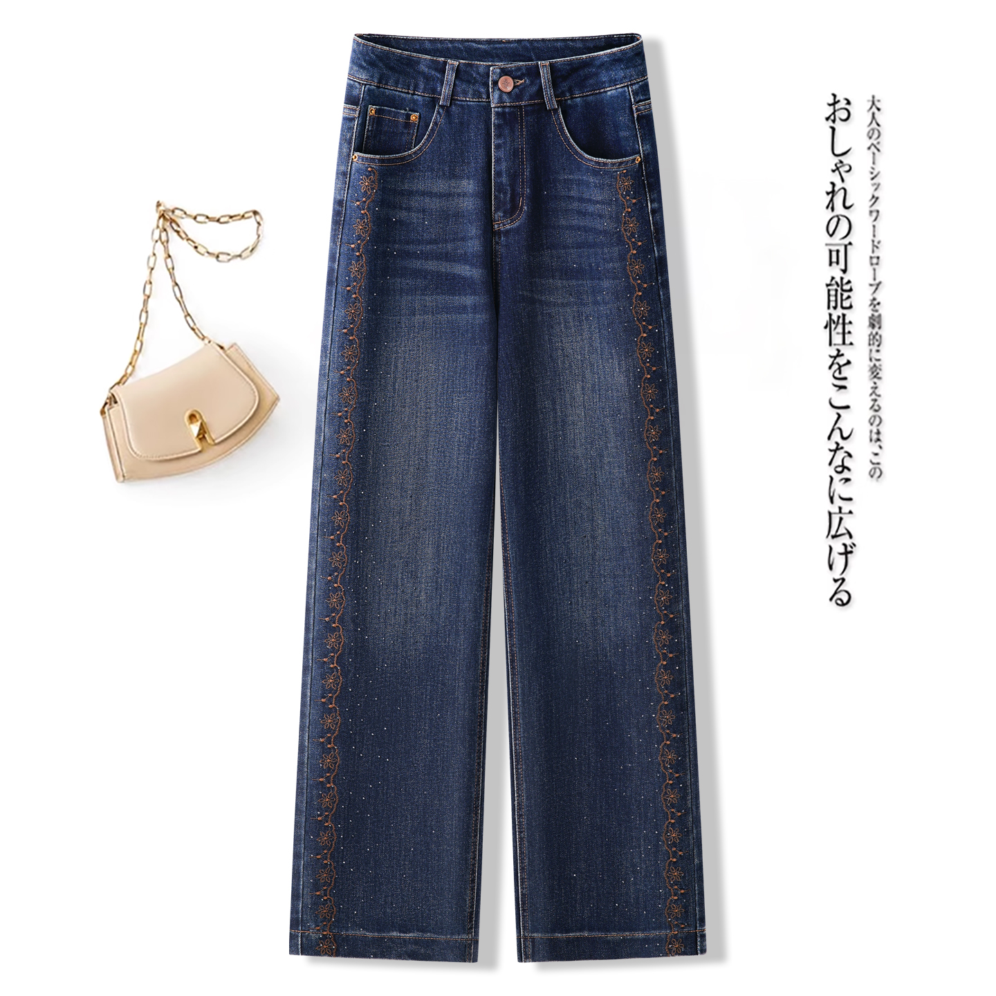 直筒裤 秋冬高腰气质时尚 女2025新款 高端花边刺绣烫钻阔腿牛仔裤