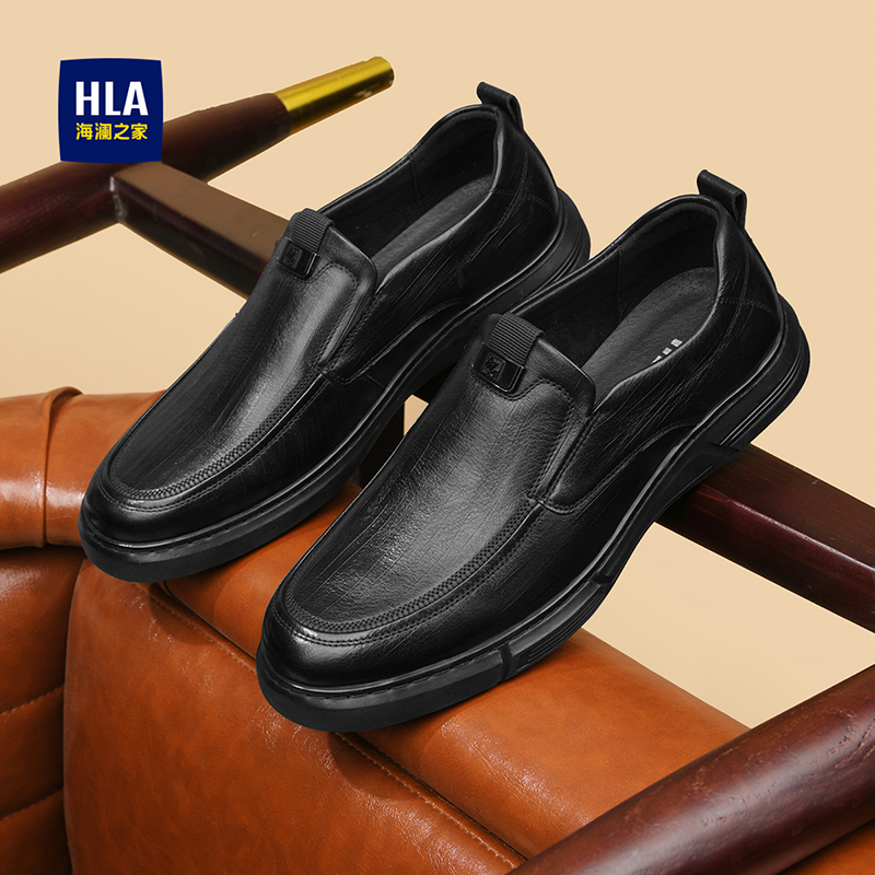 男真皮父亲软底套脚中老年爸爸鞋 商务休闲皮鞋 秋冬季 海澜之家男鞋