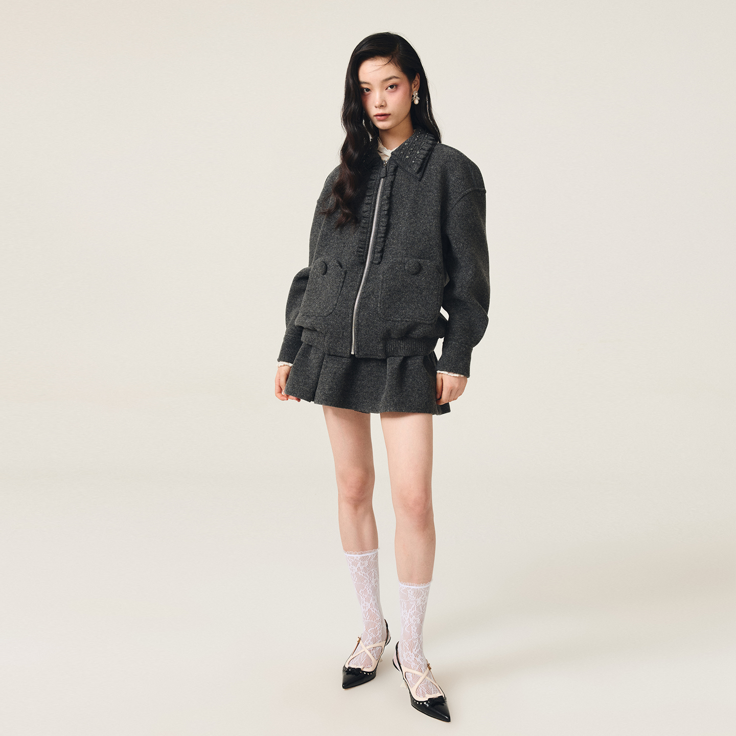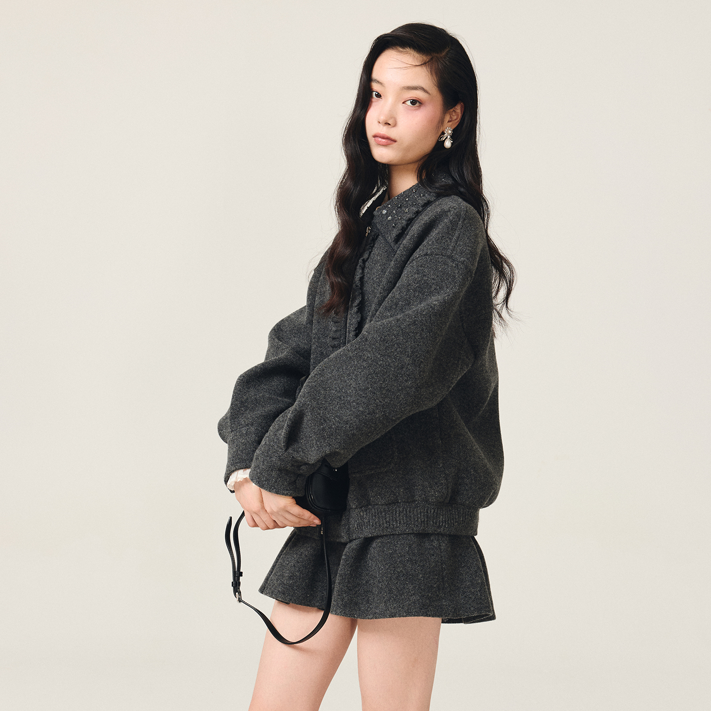 拉链连帽衫 大廓形内里绒衫 1234775 卫衣秋季 HM女装