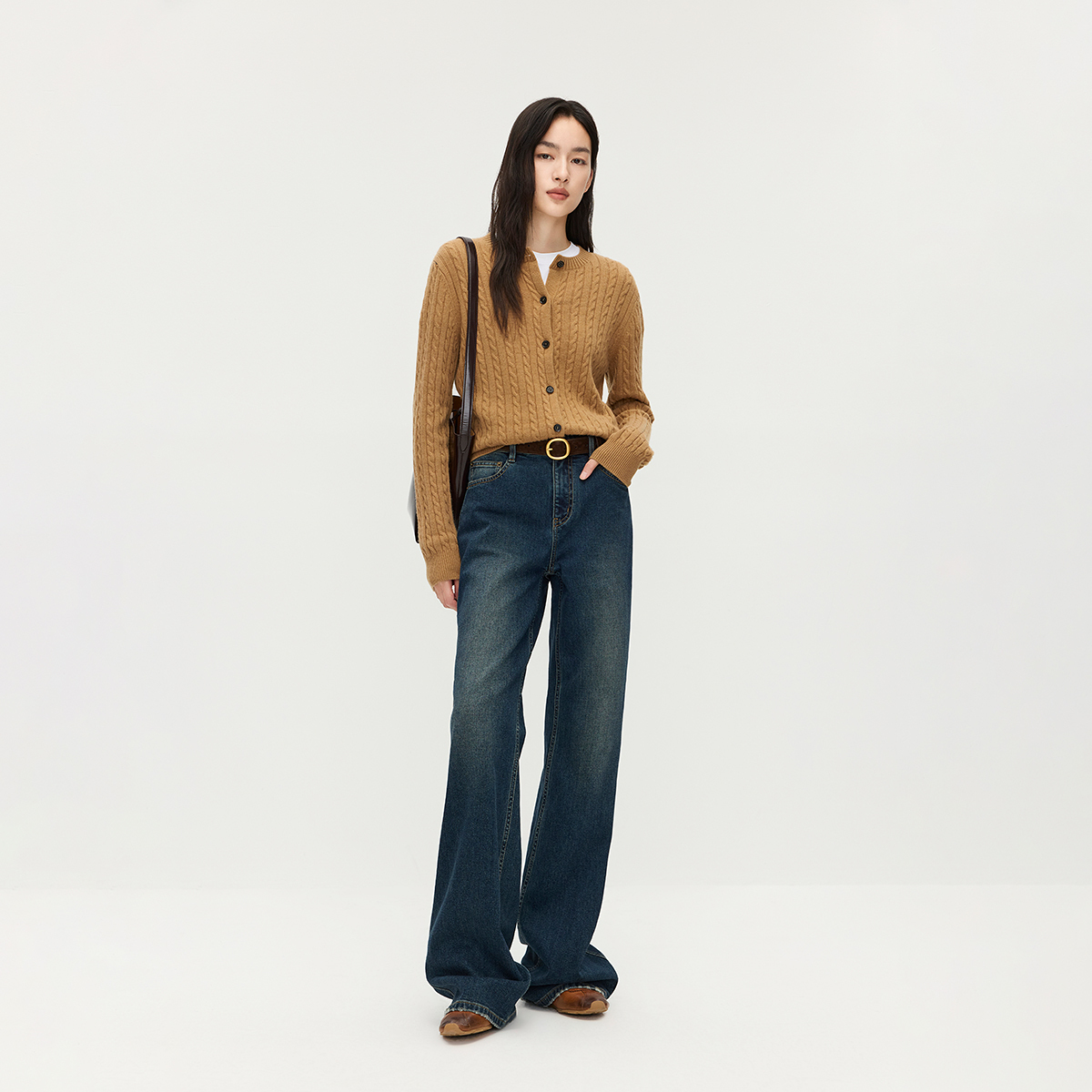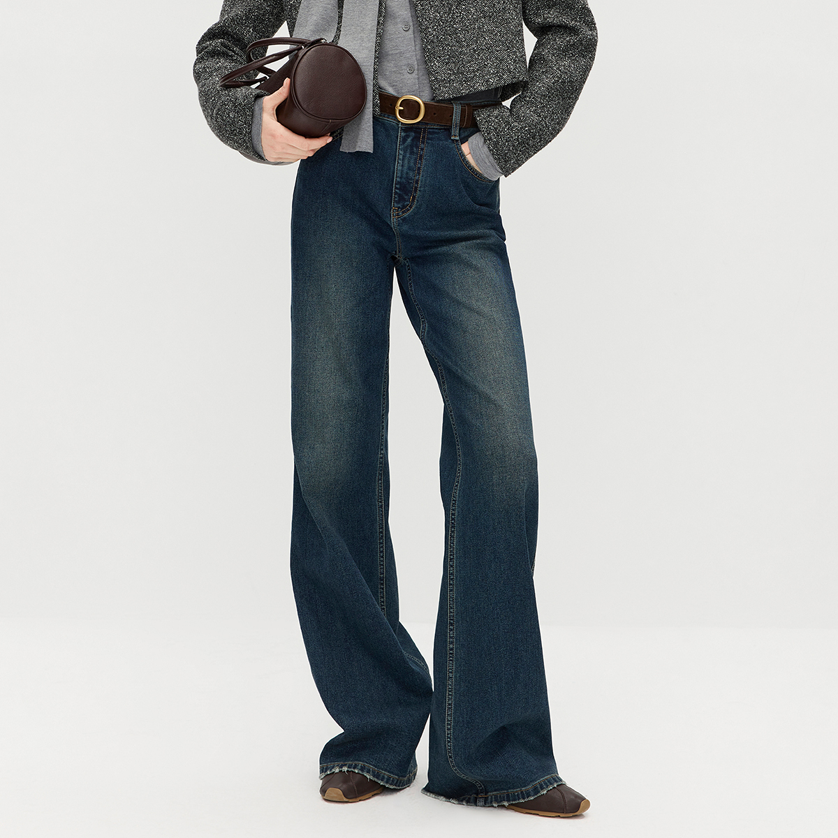女阔腿显瘦复古2025秋冬新品 牛仔长裤 弹力喇叭裤 OCHIRLY欧时力