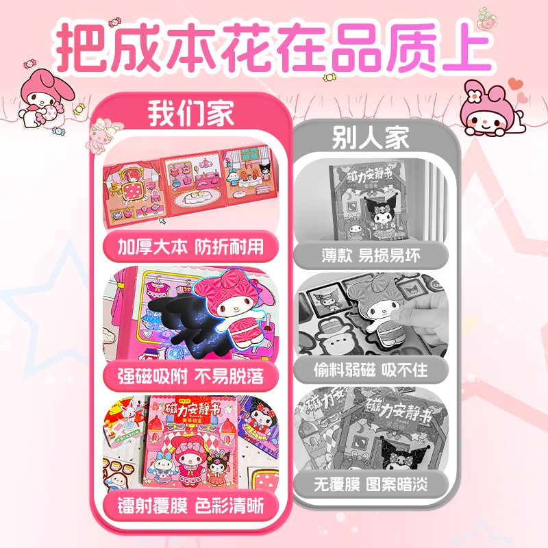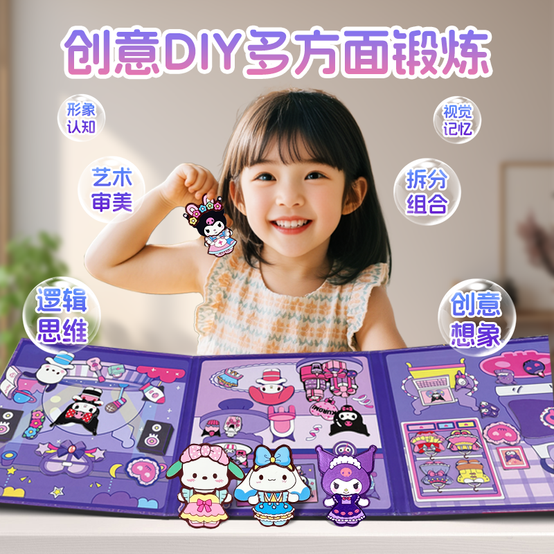 新款 库洛米磁力安静书免裁剪男女孩手工创意贴纸儿童玩具磁吸换装