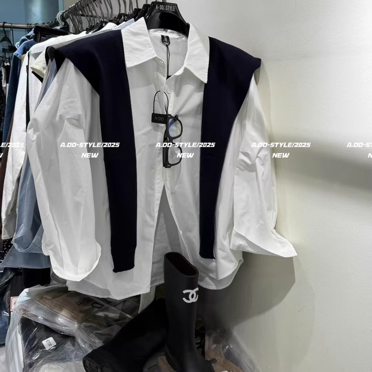 衬衫 复古气质韩系长袖 搭配针织披肩两件套上衣 新款 韩国东大门秋季