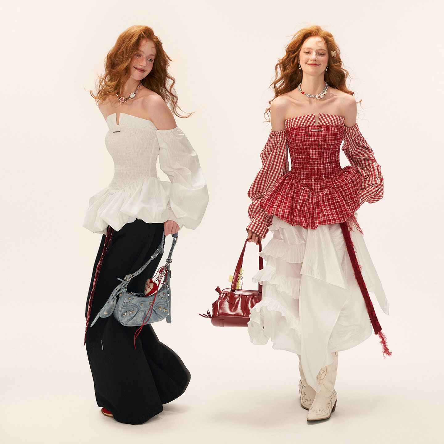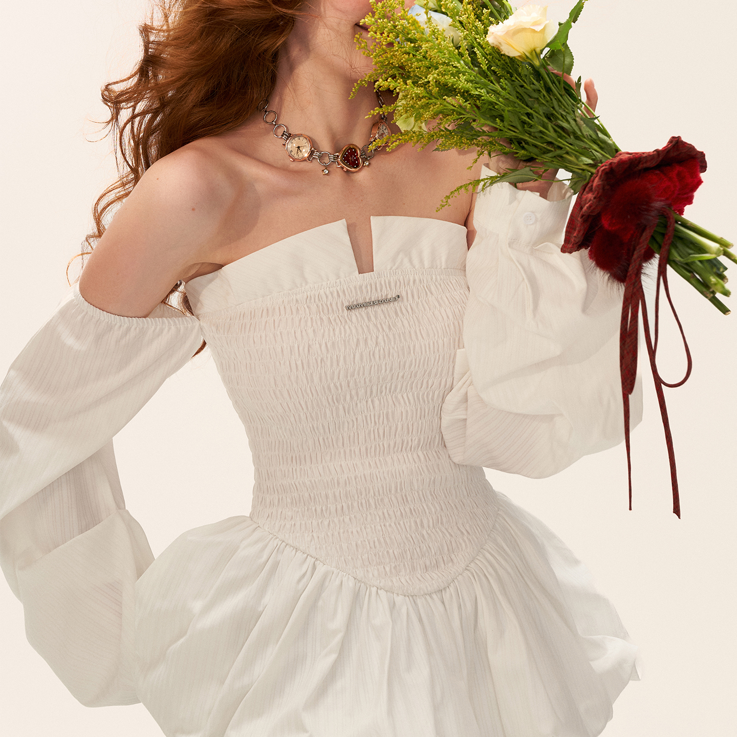 裙子 白色气质收腰长袖 MAMC条纹打揽抹胸泡泡裙连衣裙女秋季 新款