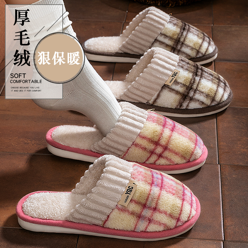 室内家居防滑保暖毛绒静音情侣拖鞋 秋冬季 女2025新款 买1送1棉拖鞋