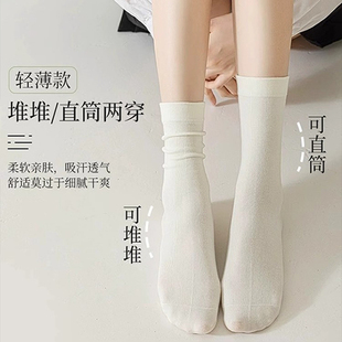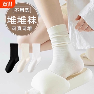 中筒袜防臭冬季 百搭无骨纯棉秋季 长袜 爆款 白色堆堆袜子女2025新款