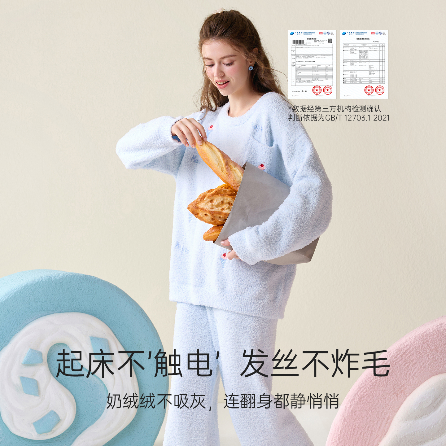 毛绒家居服秋冬珊瑚绒冬天加绒2025新款 长袖 厚 睡衣女款 半边绒冬季