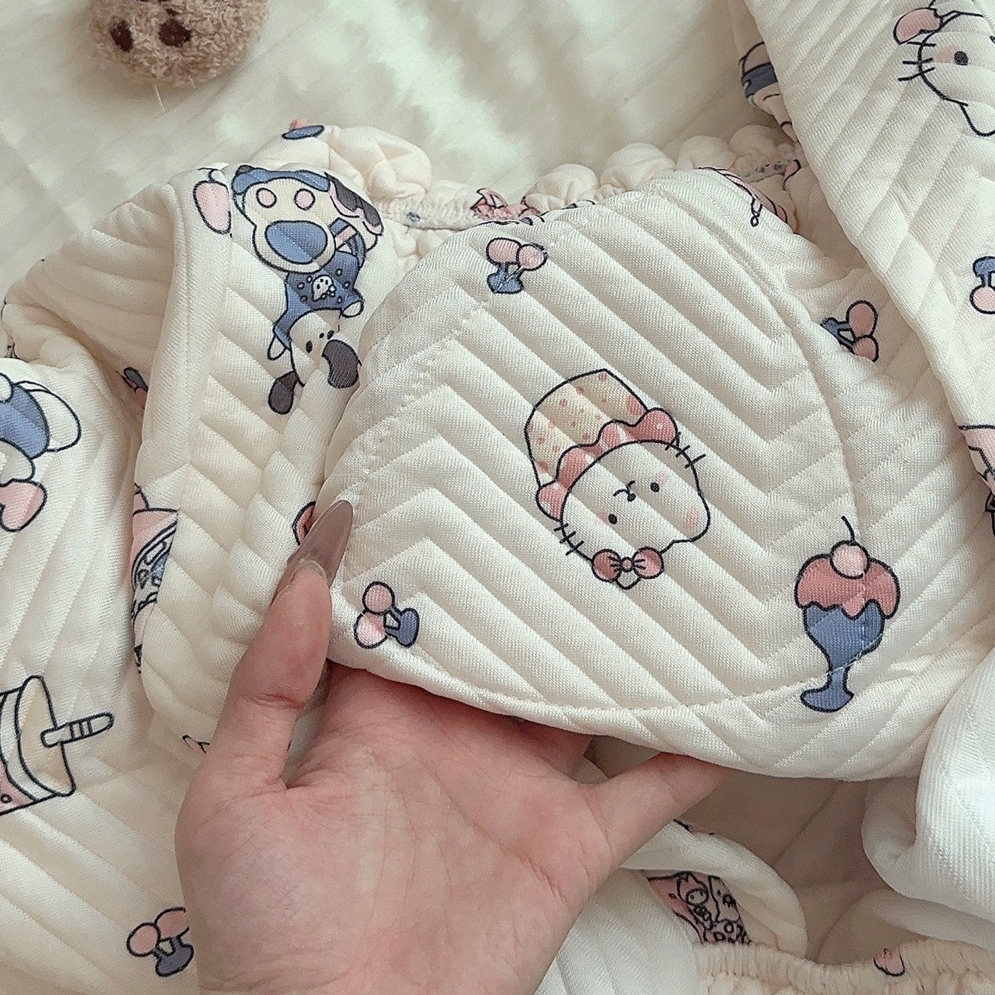 纯色全棉大码 猫人纯棉睡衣女春秋款 套装 长袖 宽松家居服 带胸垫开衫