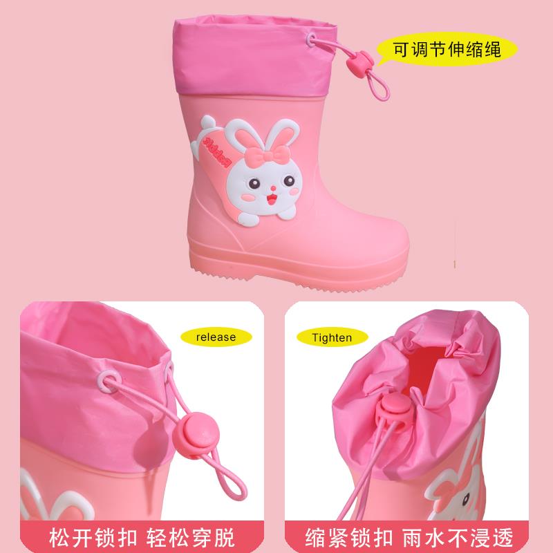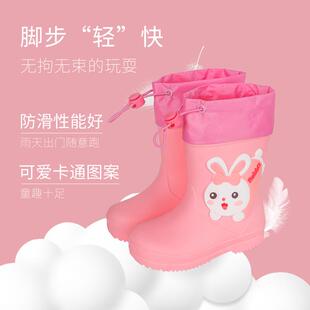 防滑公主雨靴小童宝宝幼儿小孩加绒水鞋 女童雨鞋 上学专用儿童女款