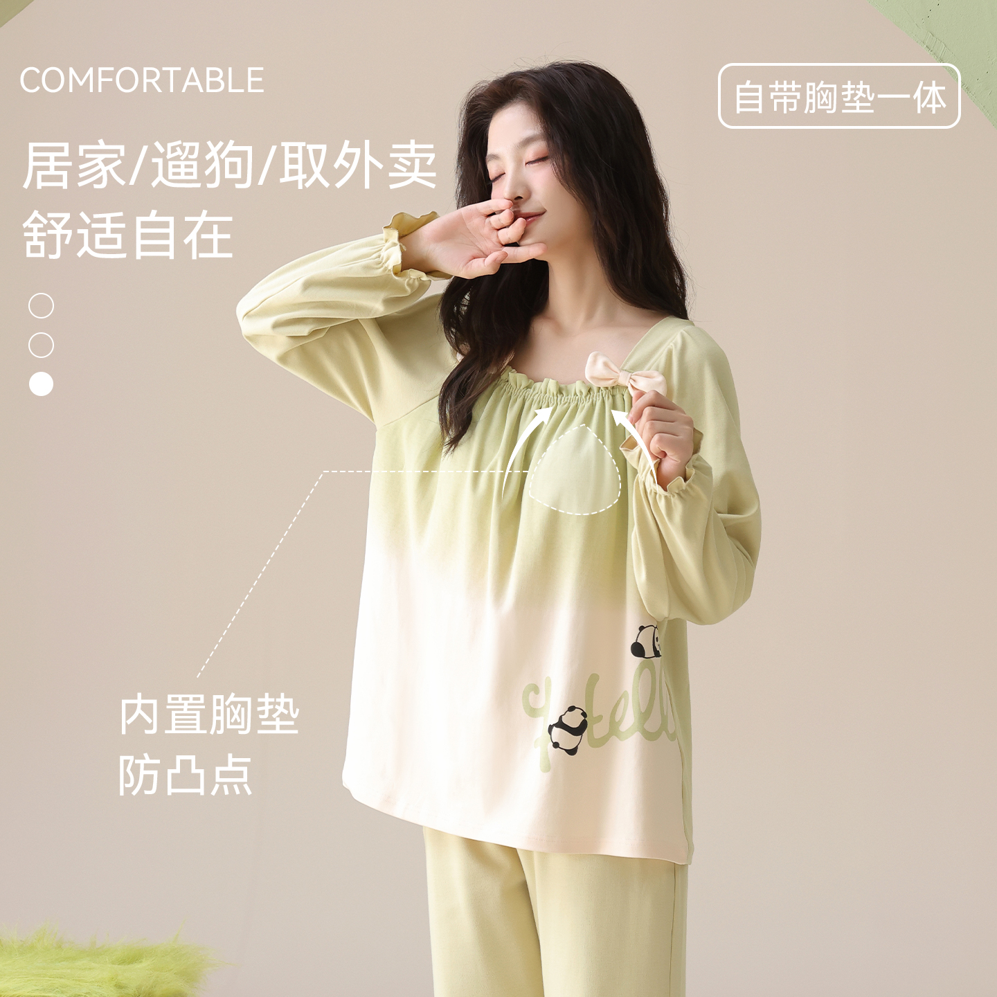 长袖 带胸垫秋季 公主家居服女可外穿 纯棉睡衣女款 都市丽人2025新款