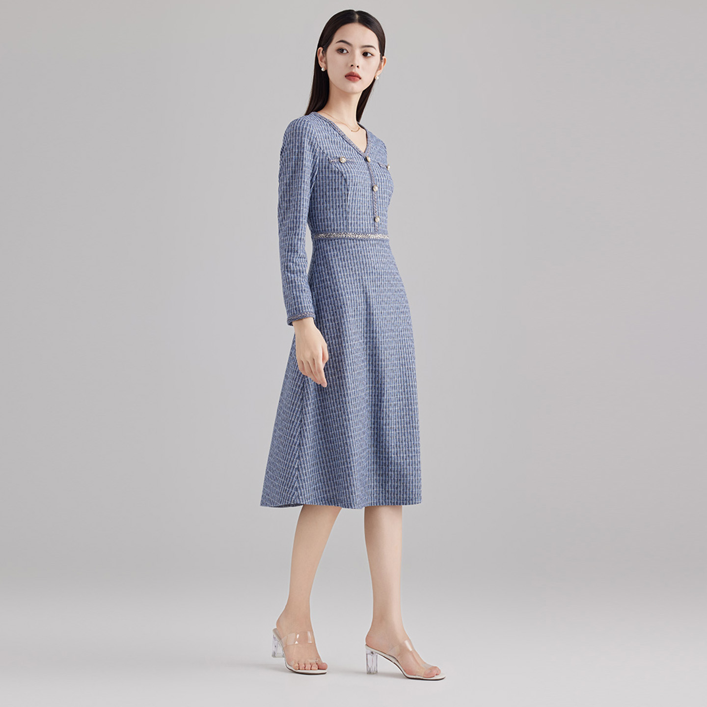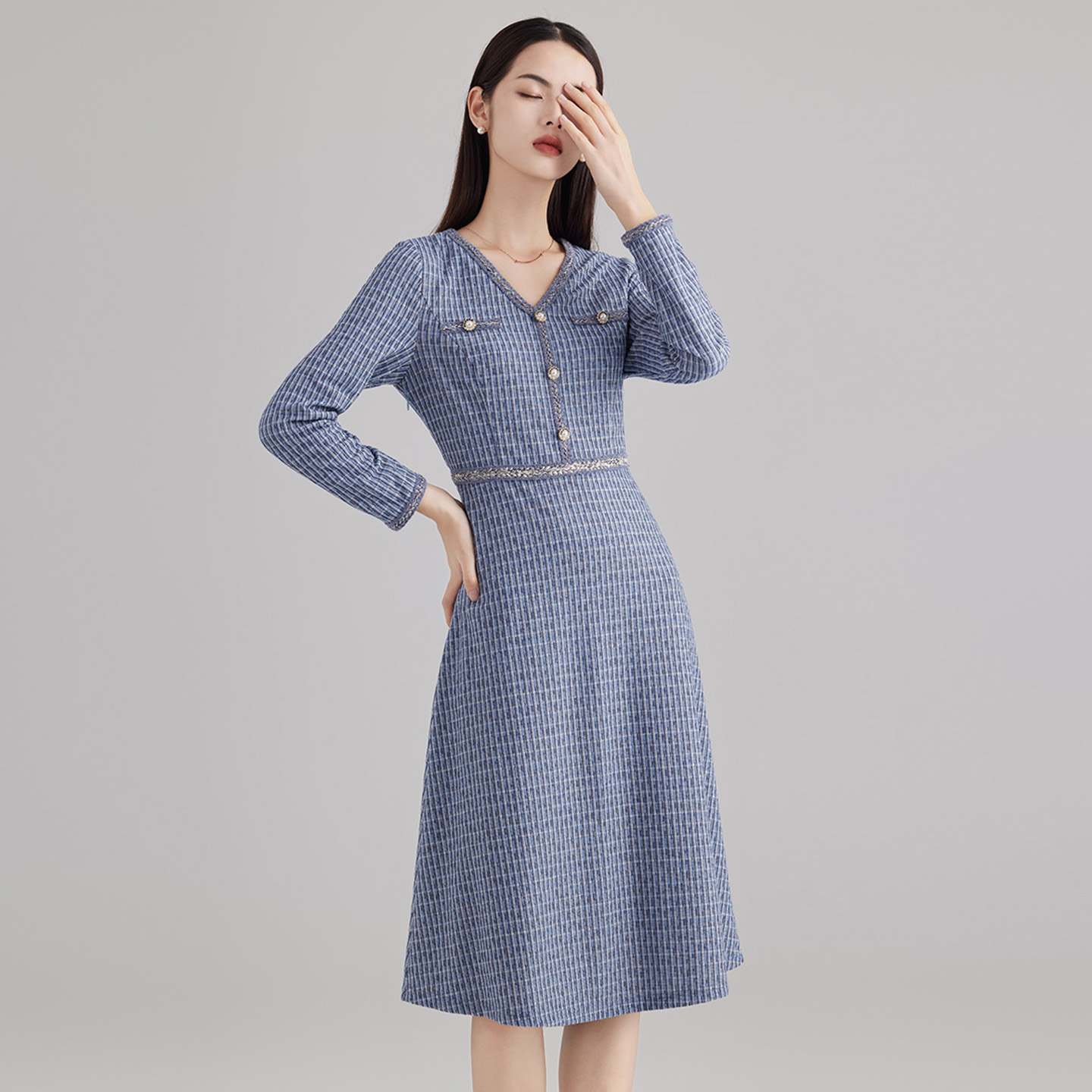 珂莱蒂尔2025秋新法式 假两件优雅气质收腰连衣裙