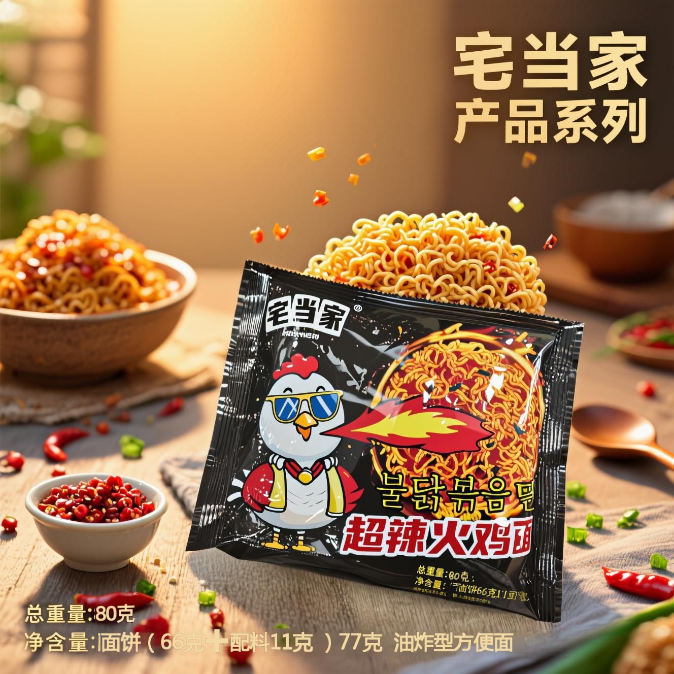 火鸡面袋装 干拌面泡面夜宵速食食品整箱网红超辣方便面宅当家 韩式