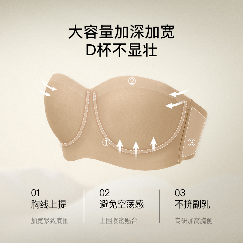 ubras妥妥杯加固防滑无肩带内衣美背大胸显小抹胸聚拢隐形文胸罩